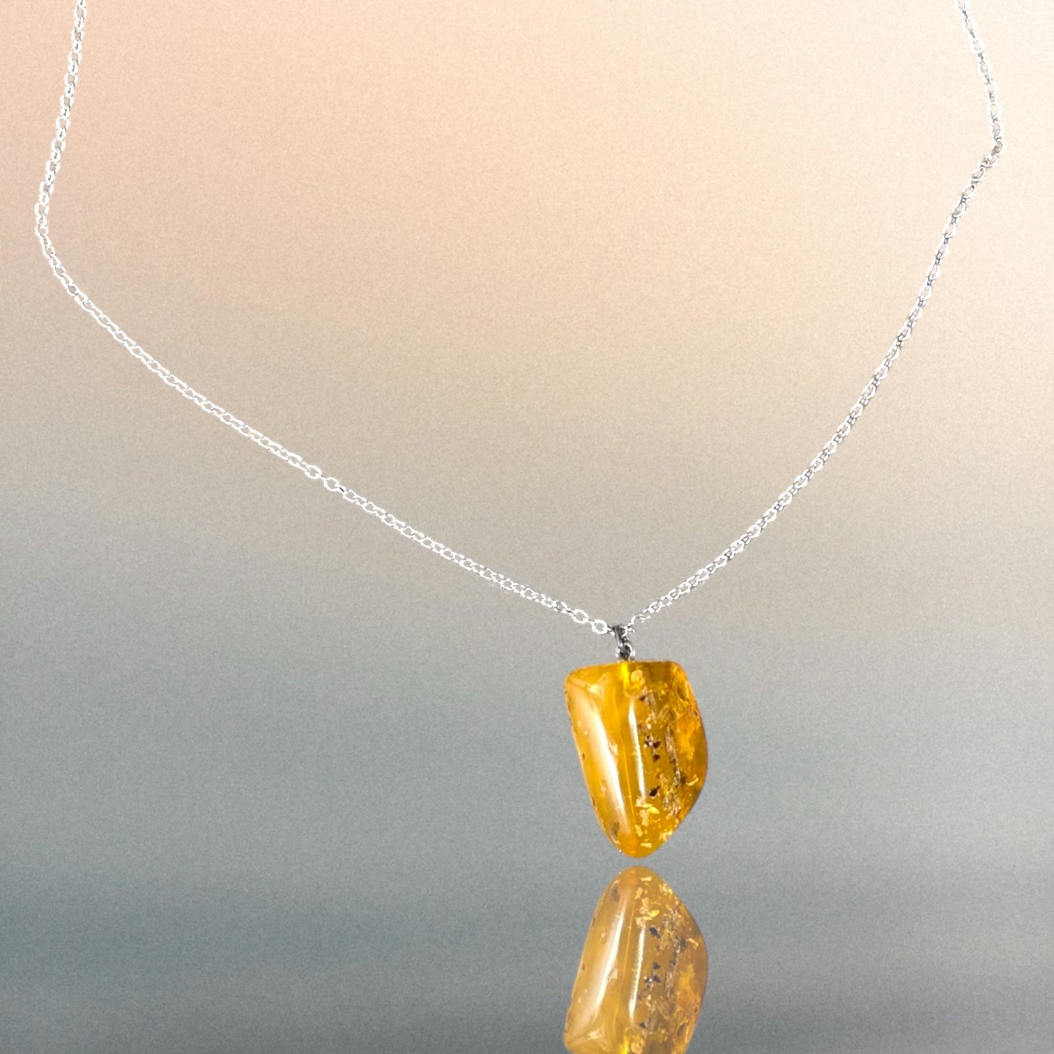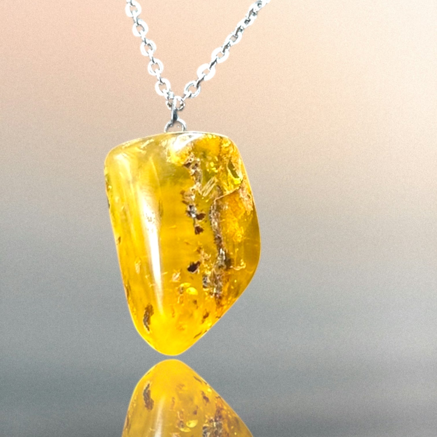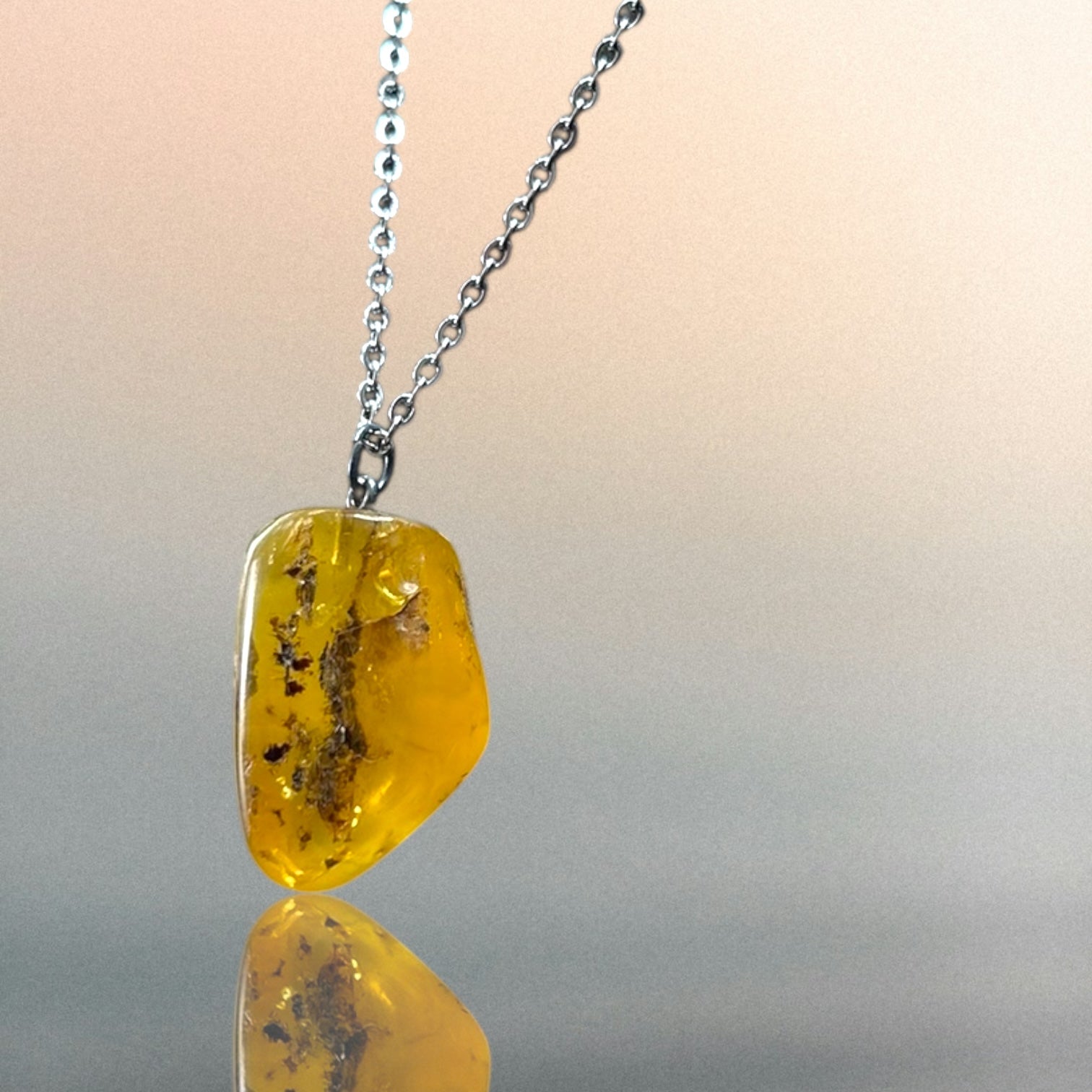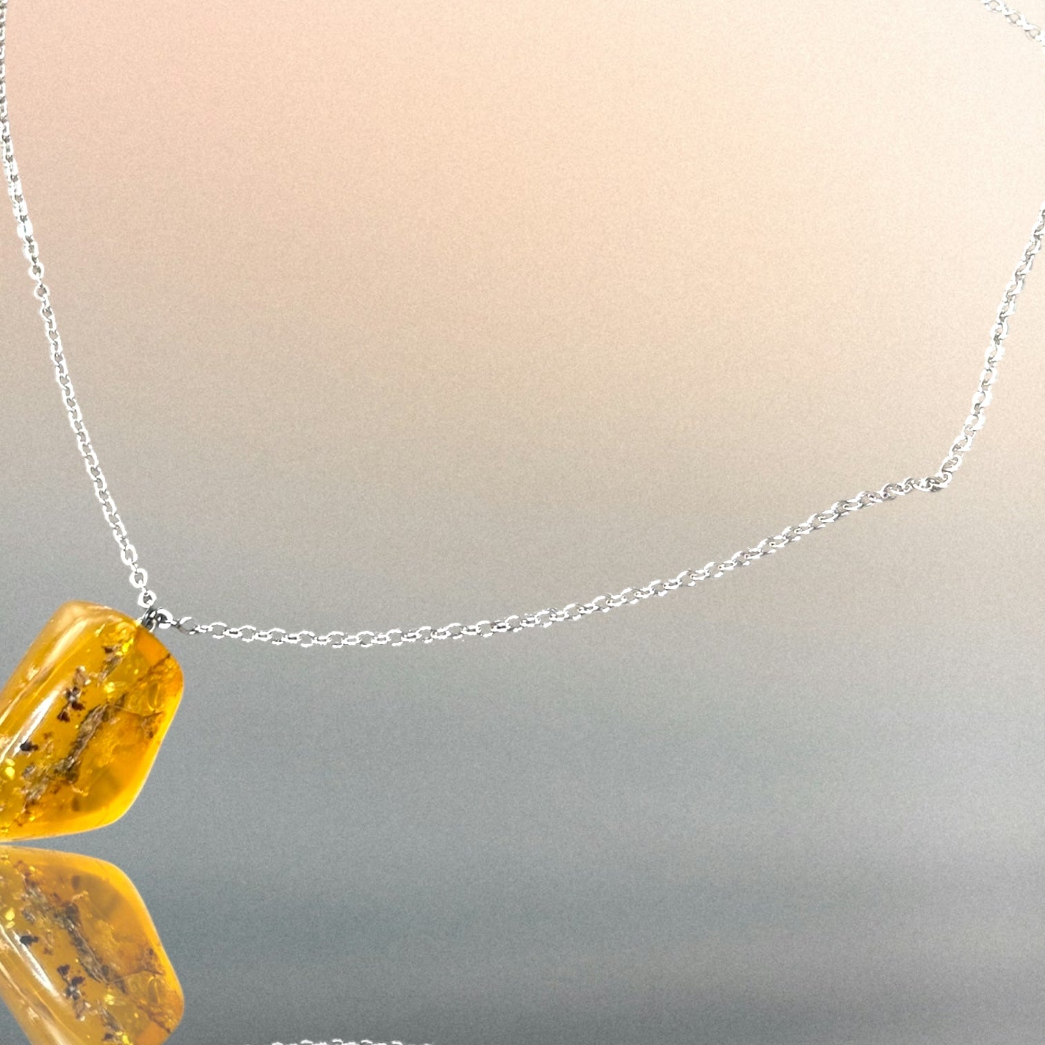 Kettenanhänger aus Bernstein an einer Edelstahlkette