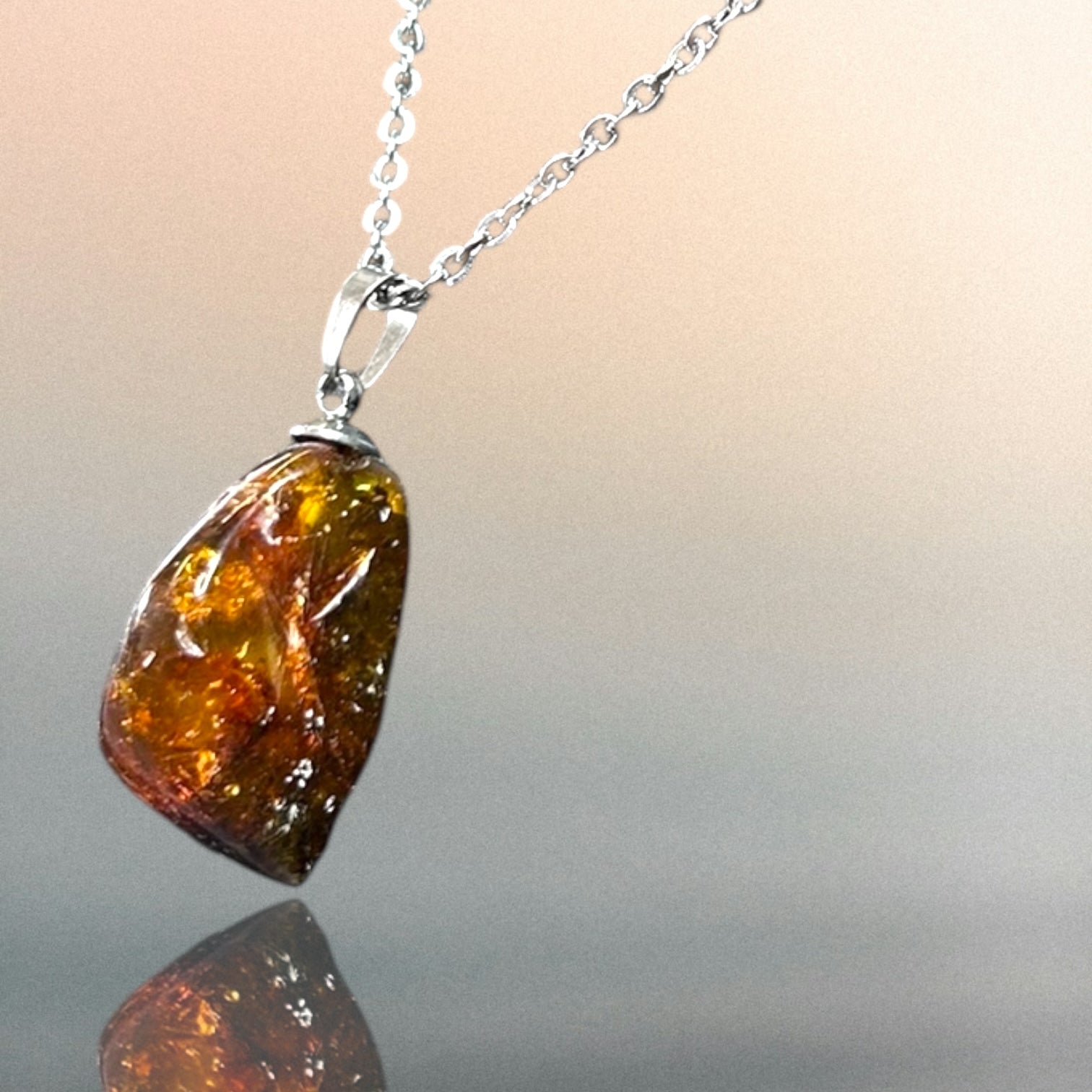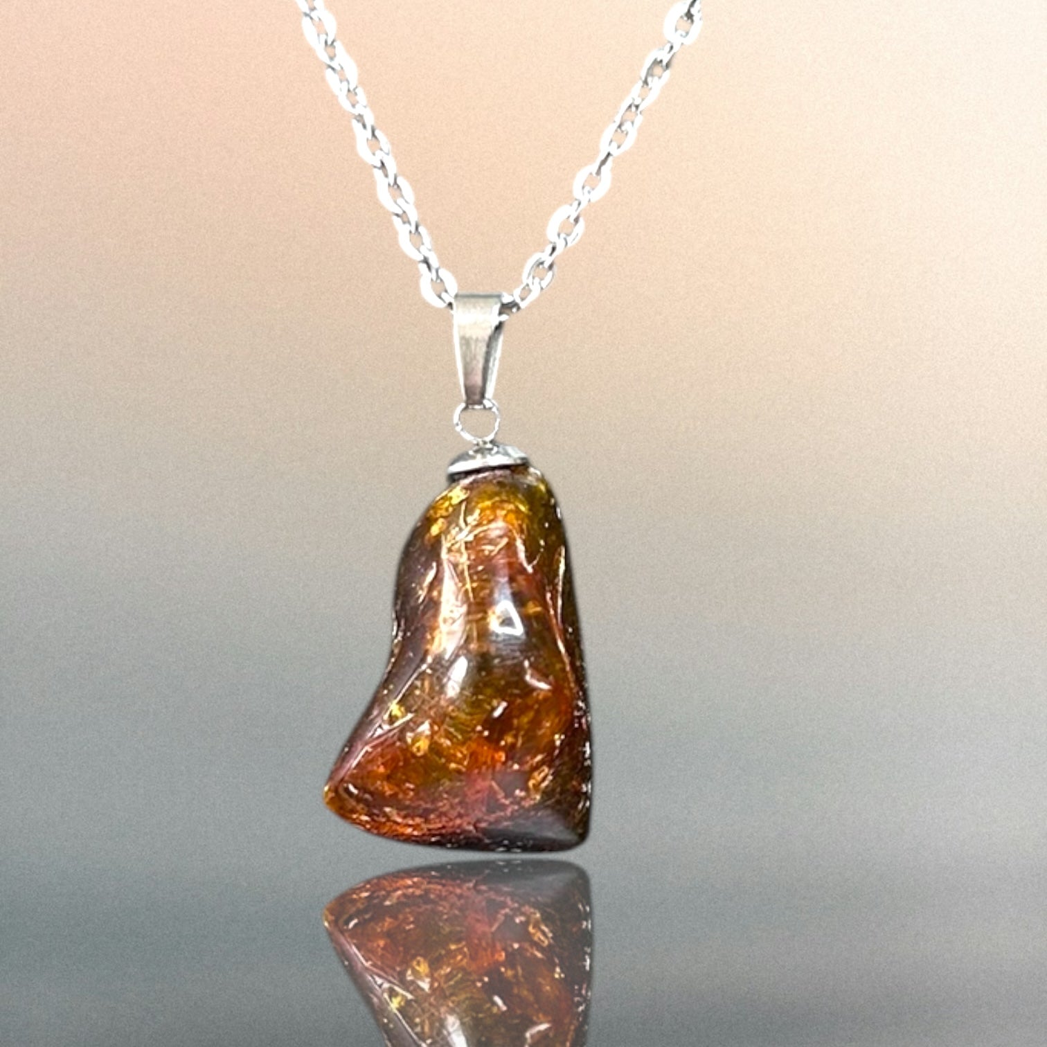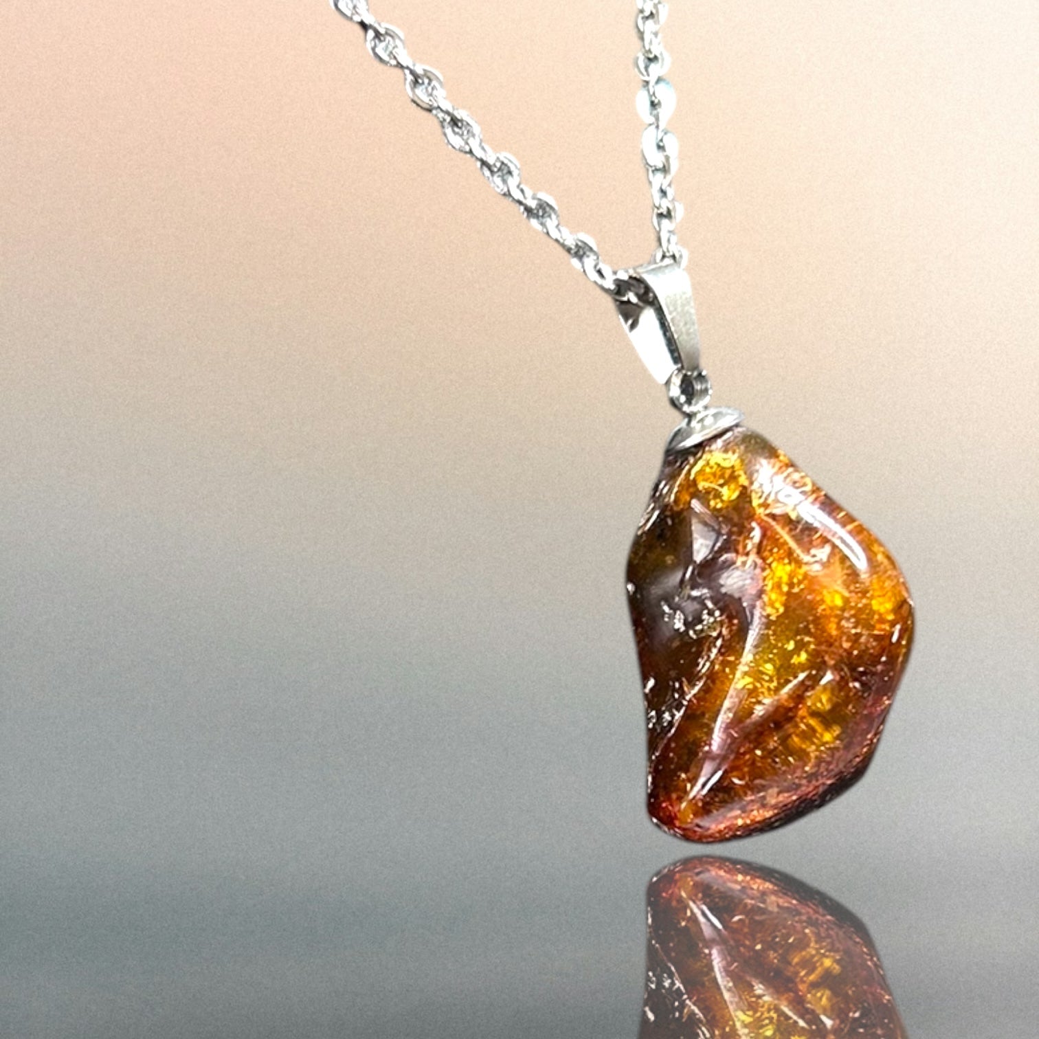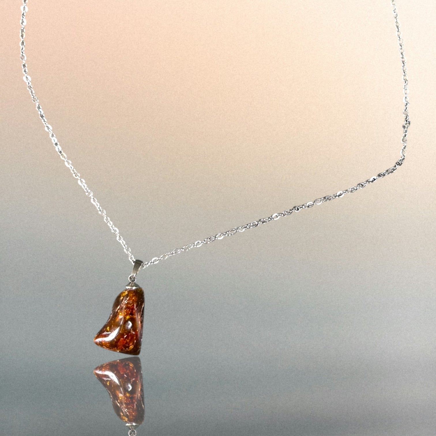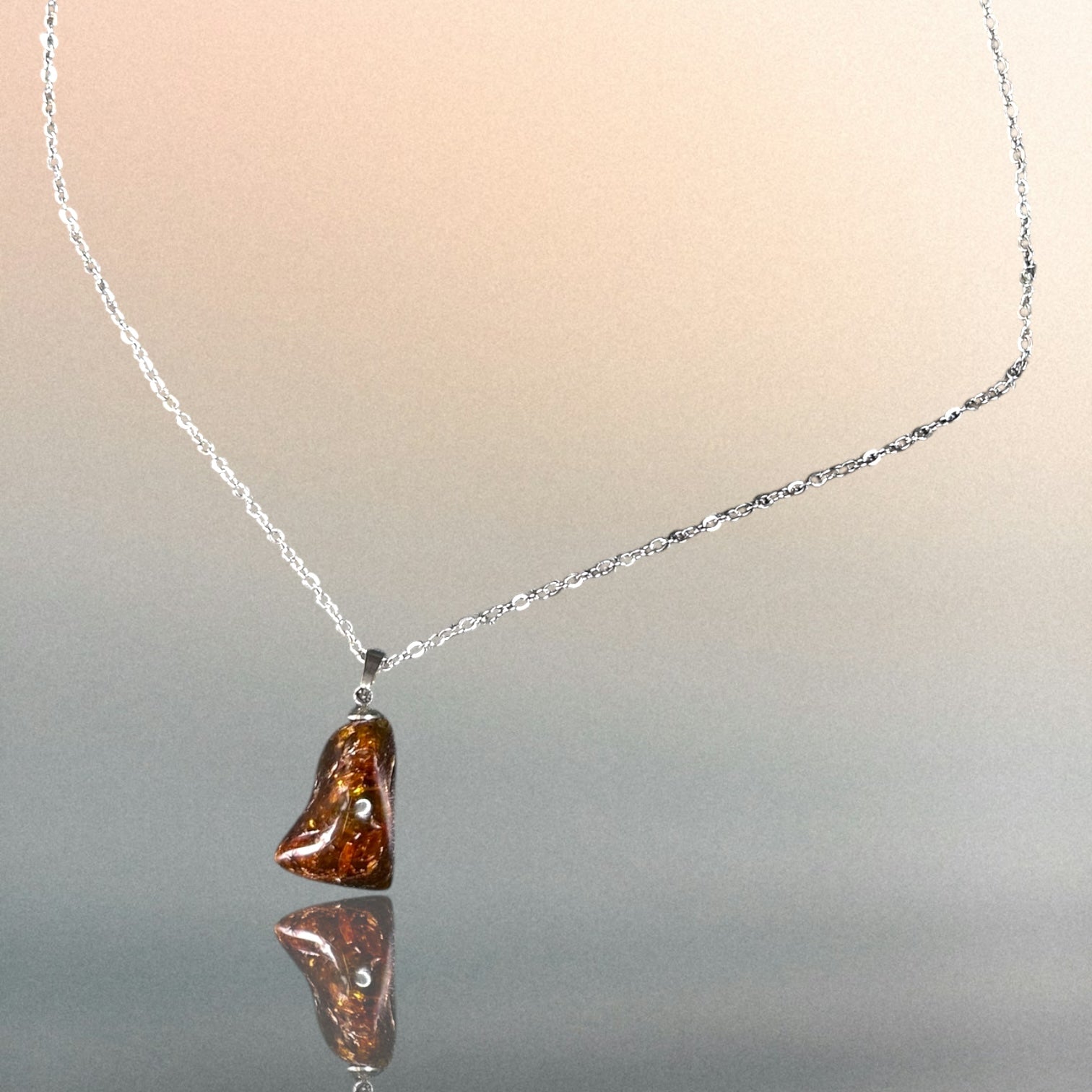 Kettenanhänger aus Bernstein an einer Edelstahlkette