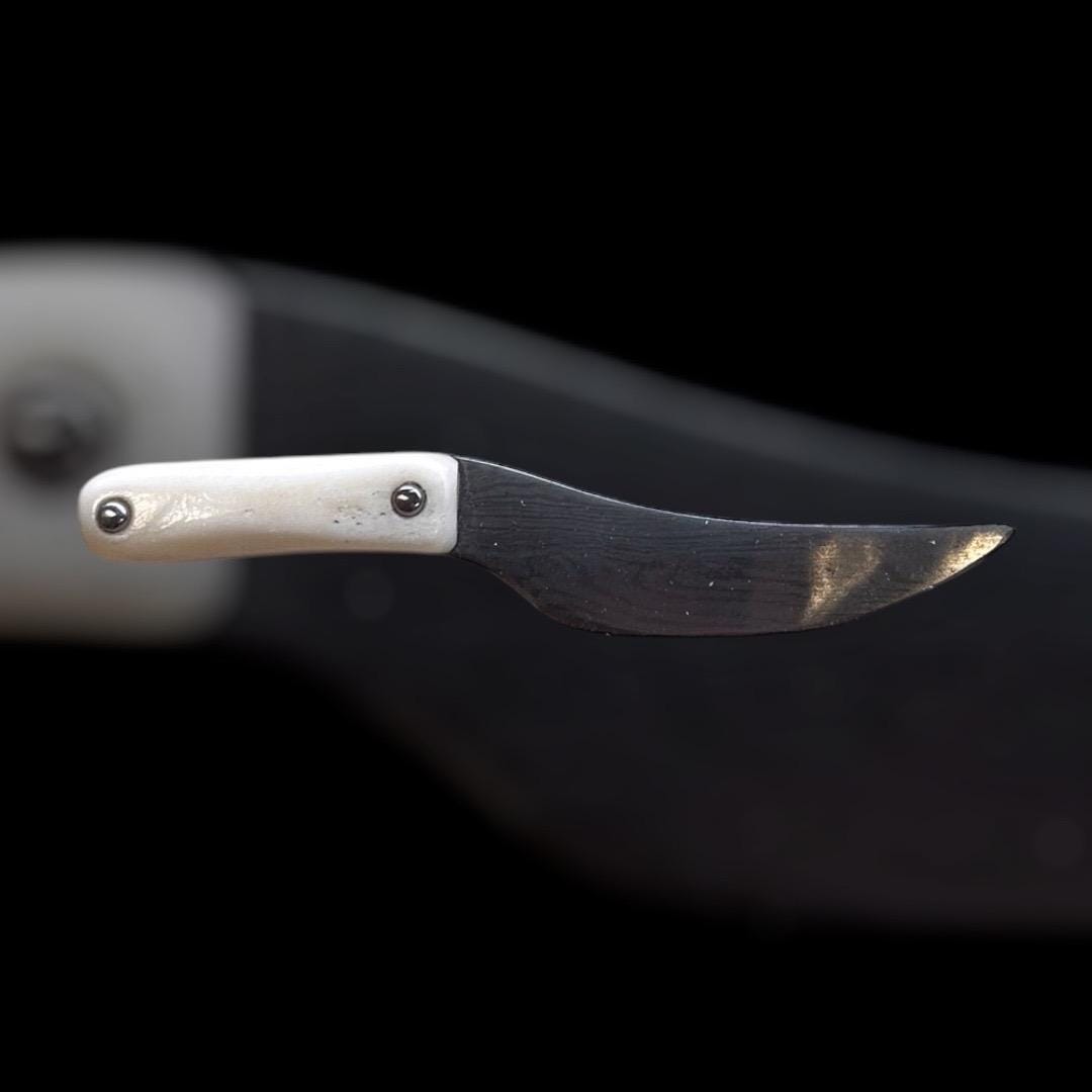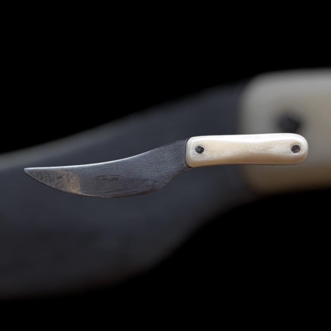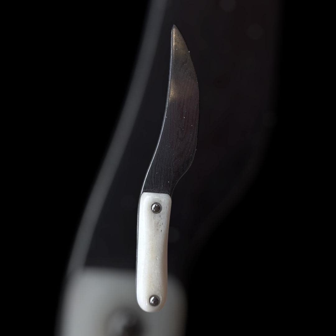 Miniature knife with bone handle and Damascus blade, 10 cm
