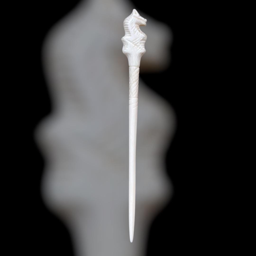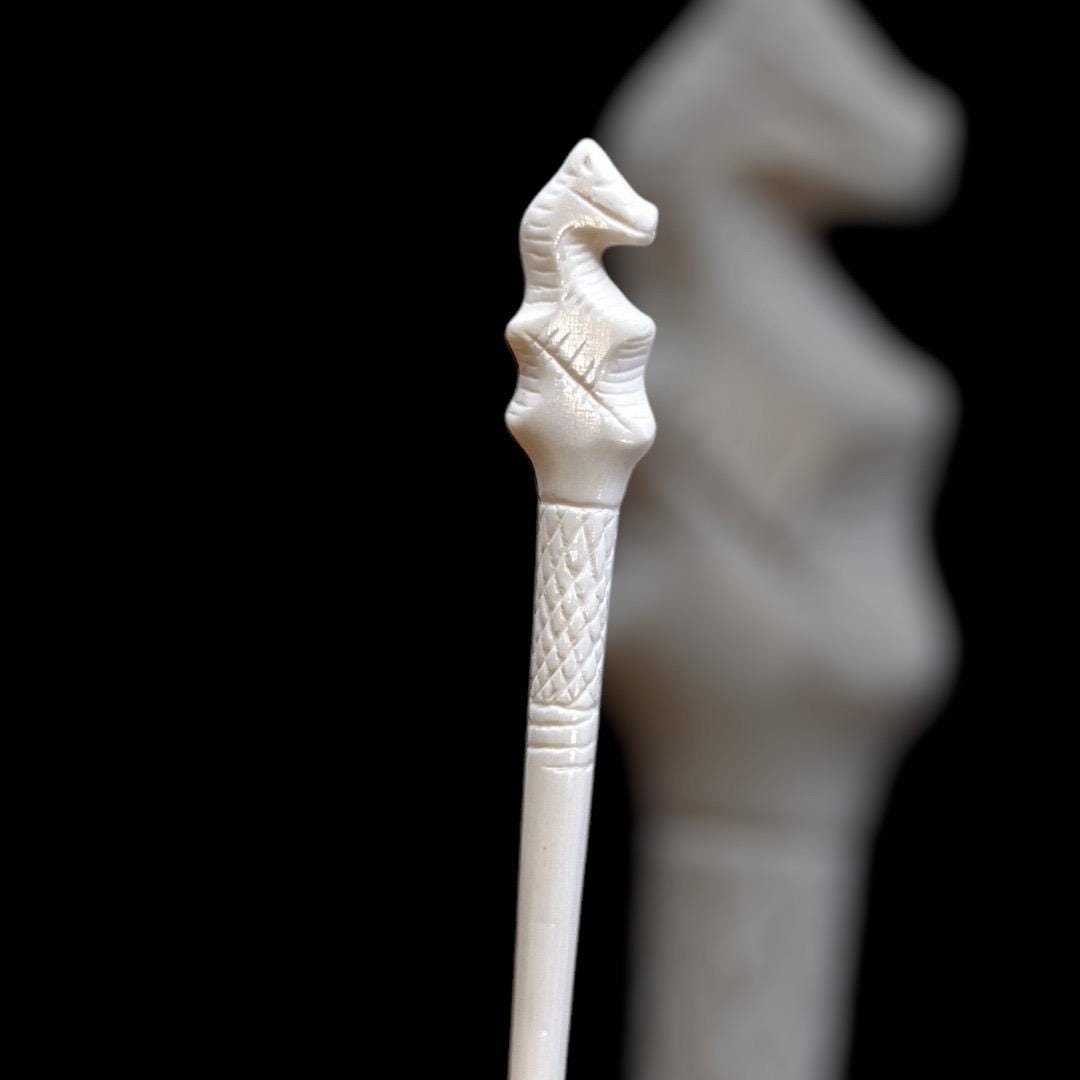 Roman hairpin with horse head decoration, 2nd-3rd century, after a find from Carnuntum, polished bone, approx. 13.5 cm