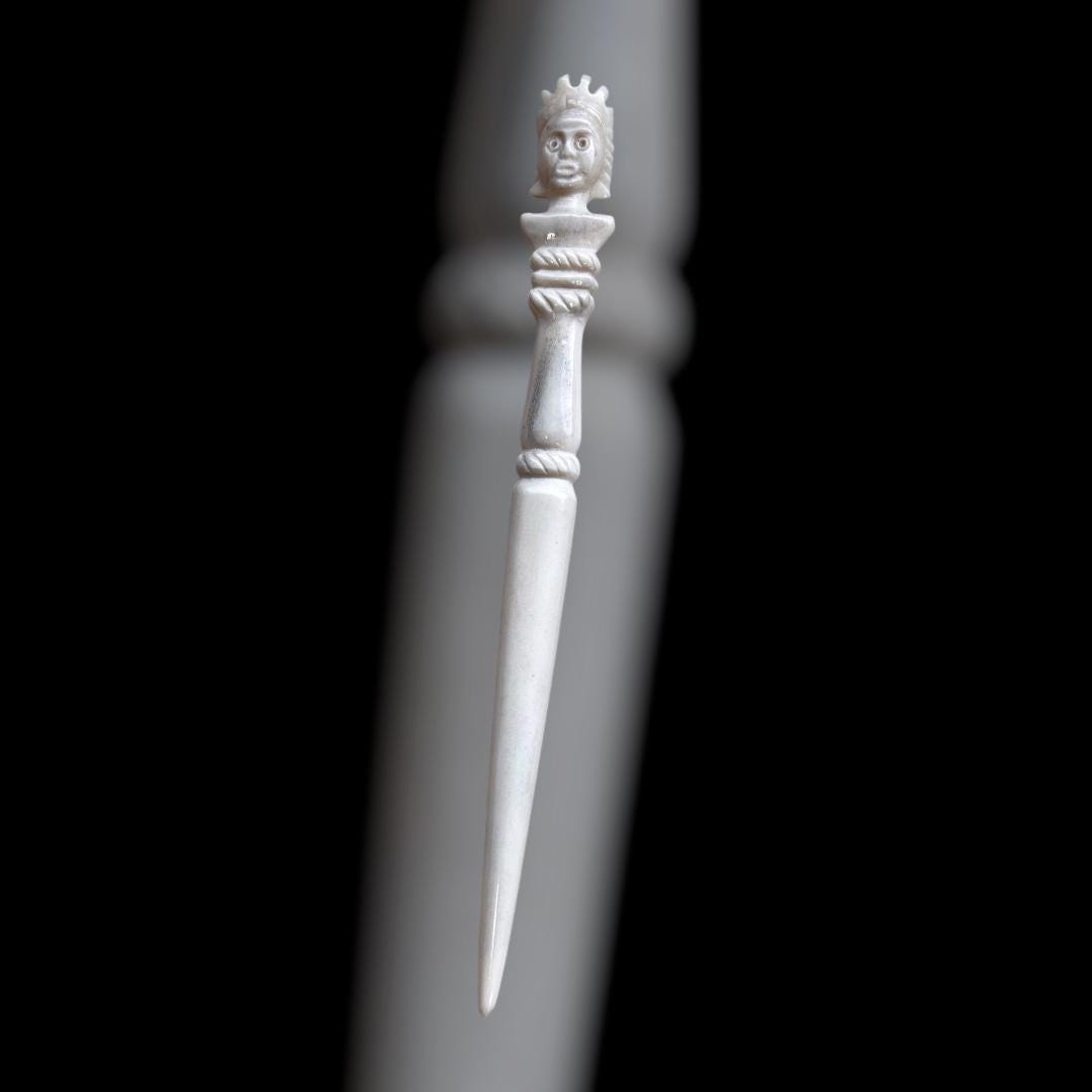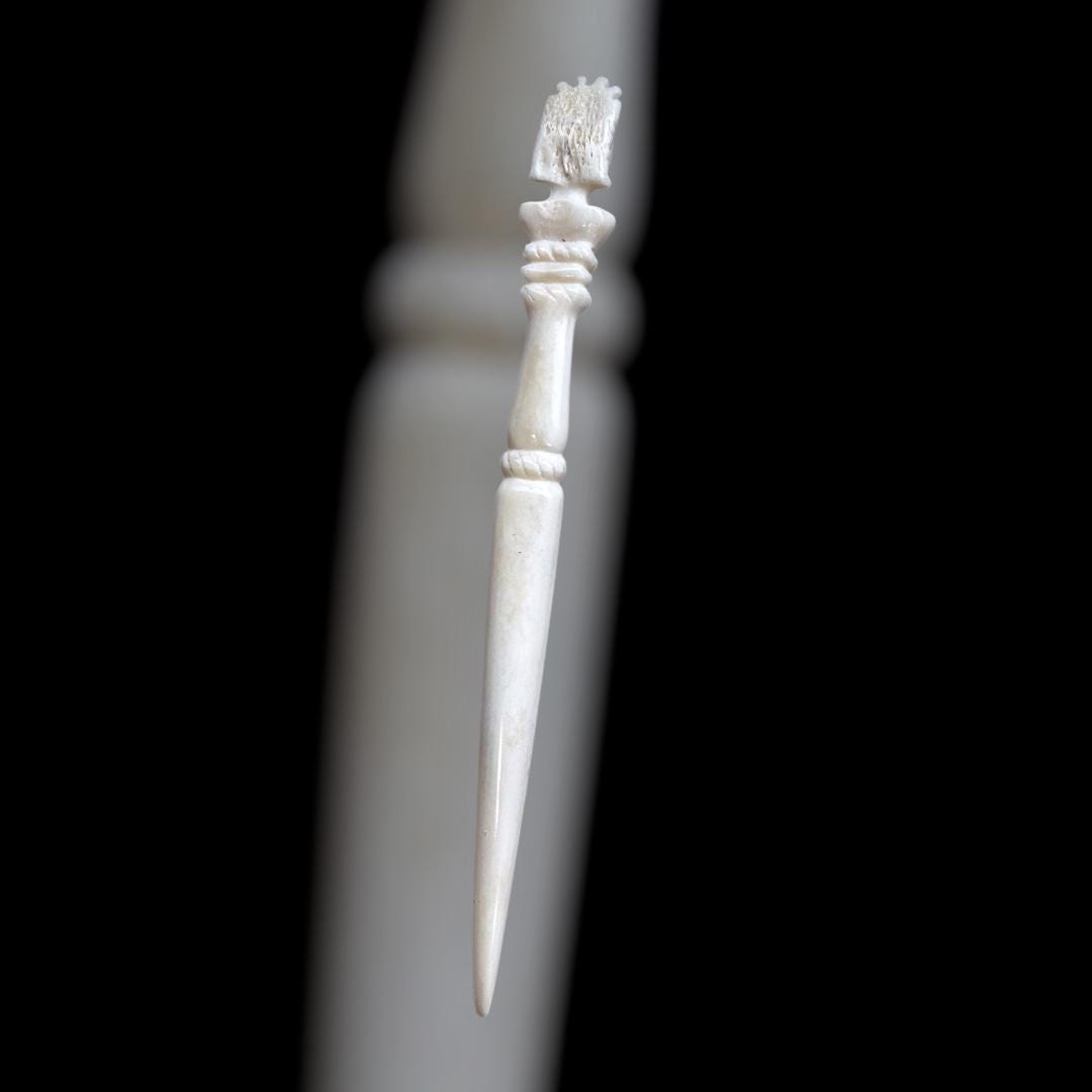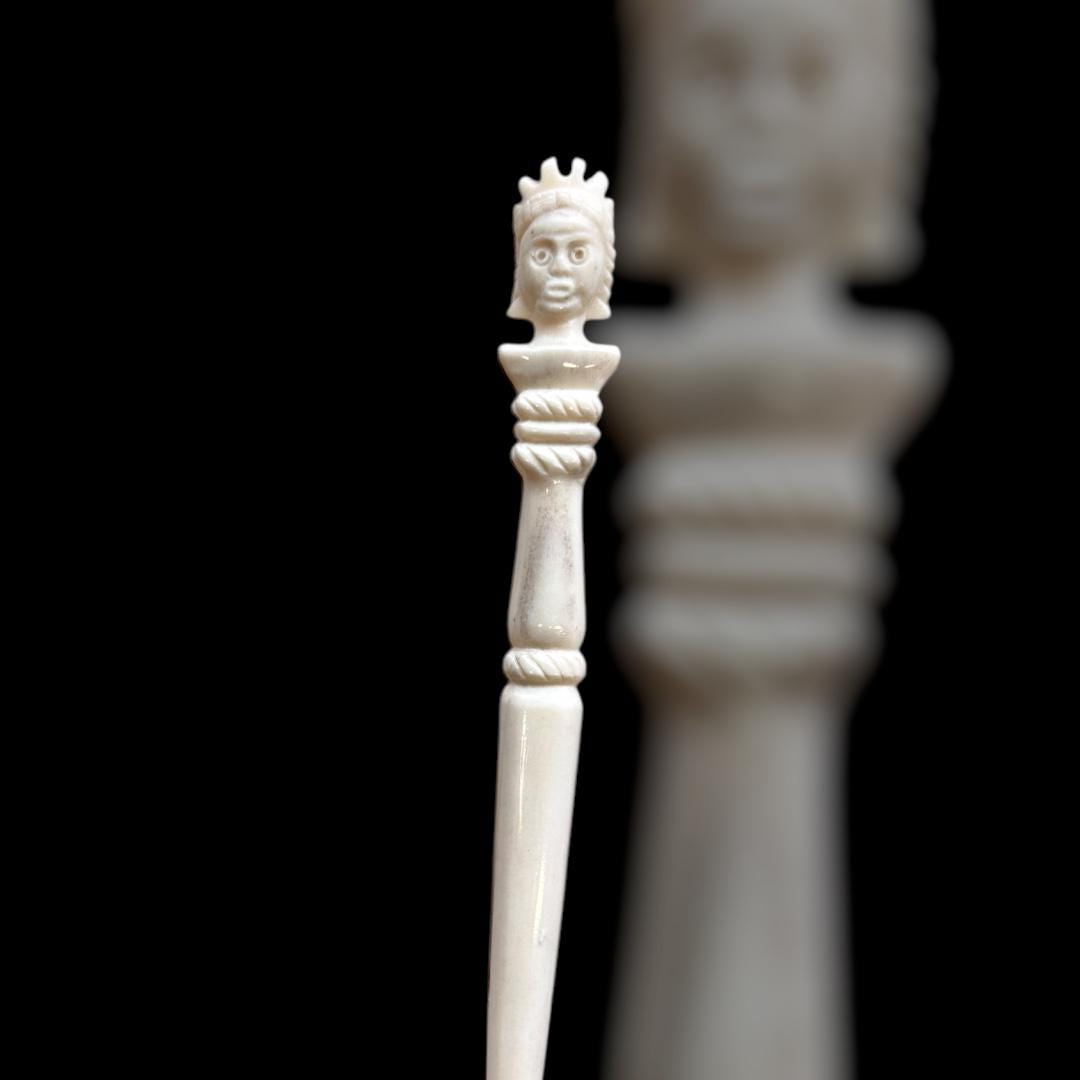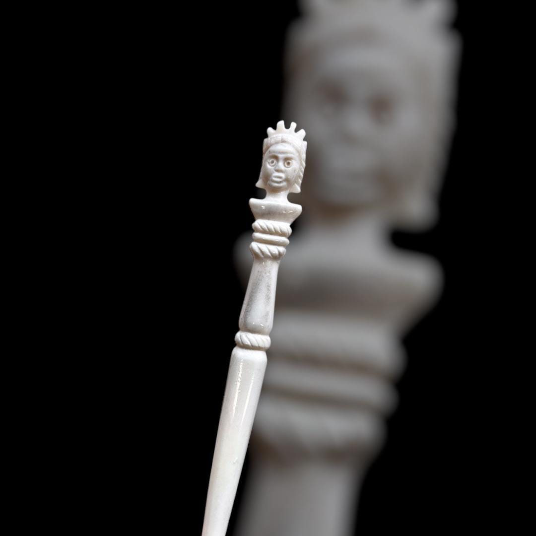 Roman hairpin with female bust, 1st-2nd century, after a find from Carnuntum, polished bone, 13 cm