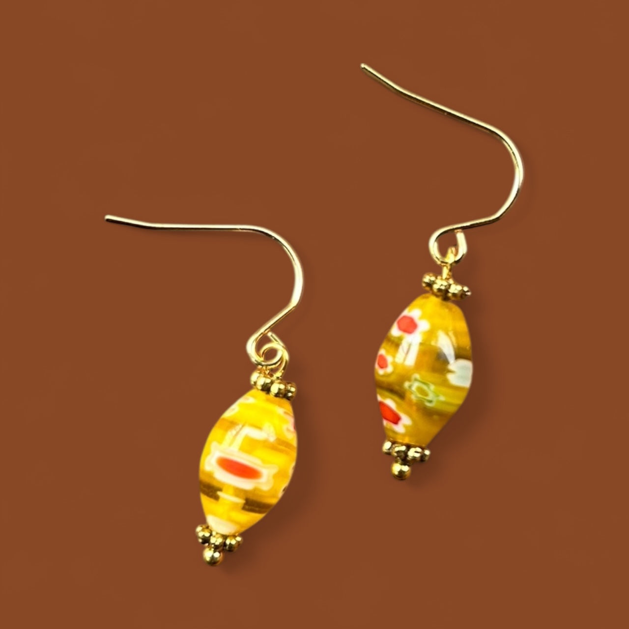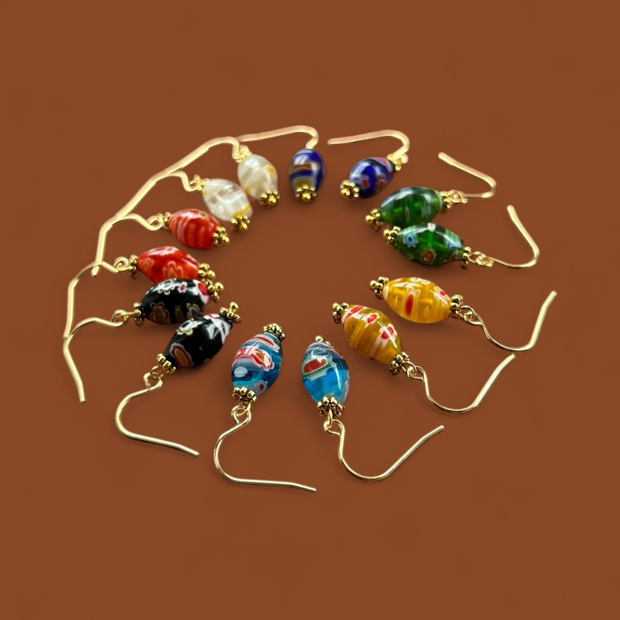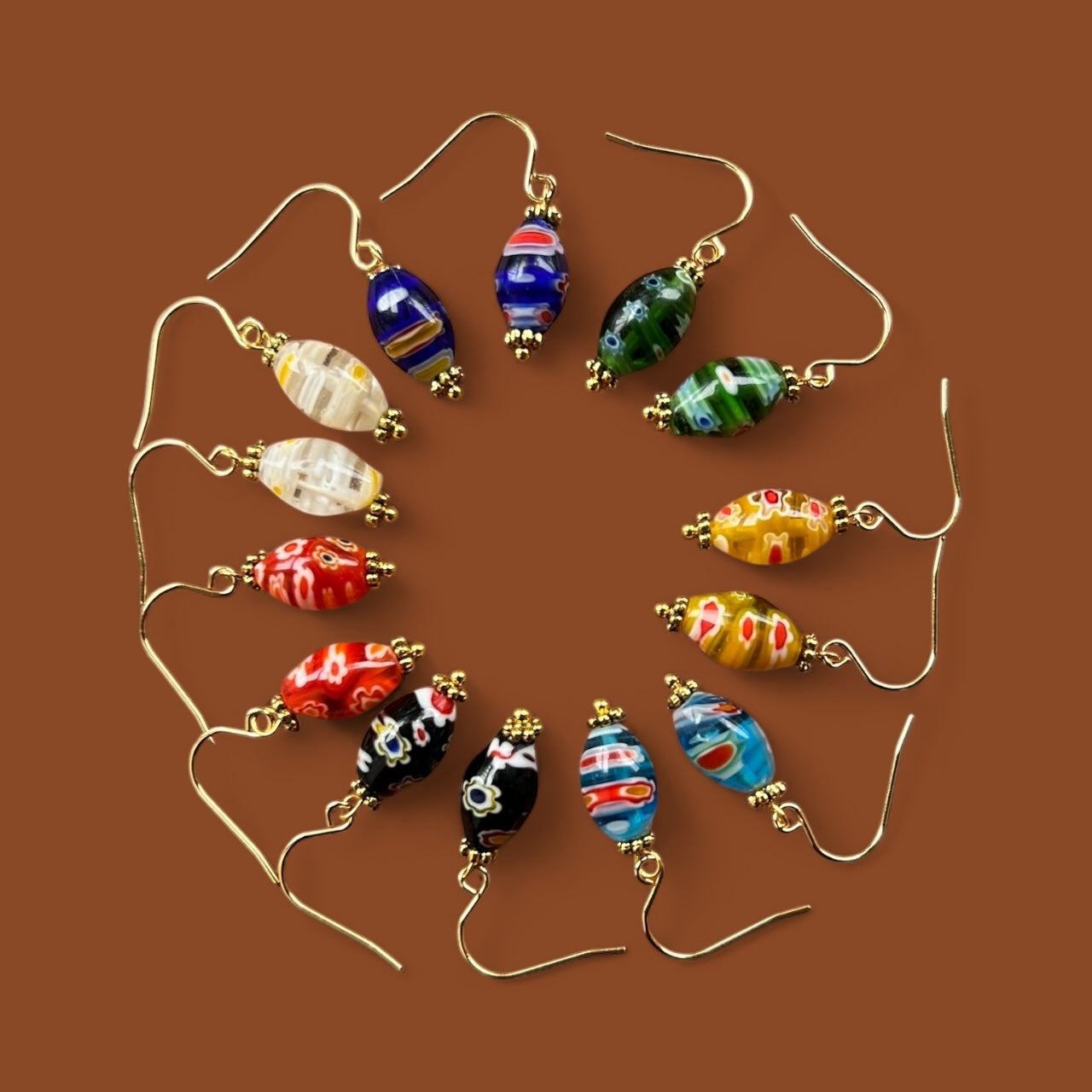 Wir bieten jetzt diese handgefertigten Ohrringe aus Millefiori-Glas und goldplaniertem Edelstahl bzw. Messing an.