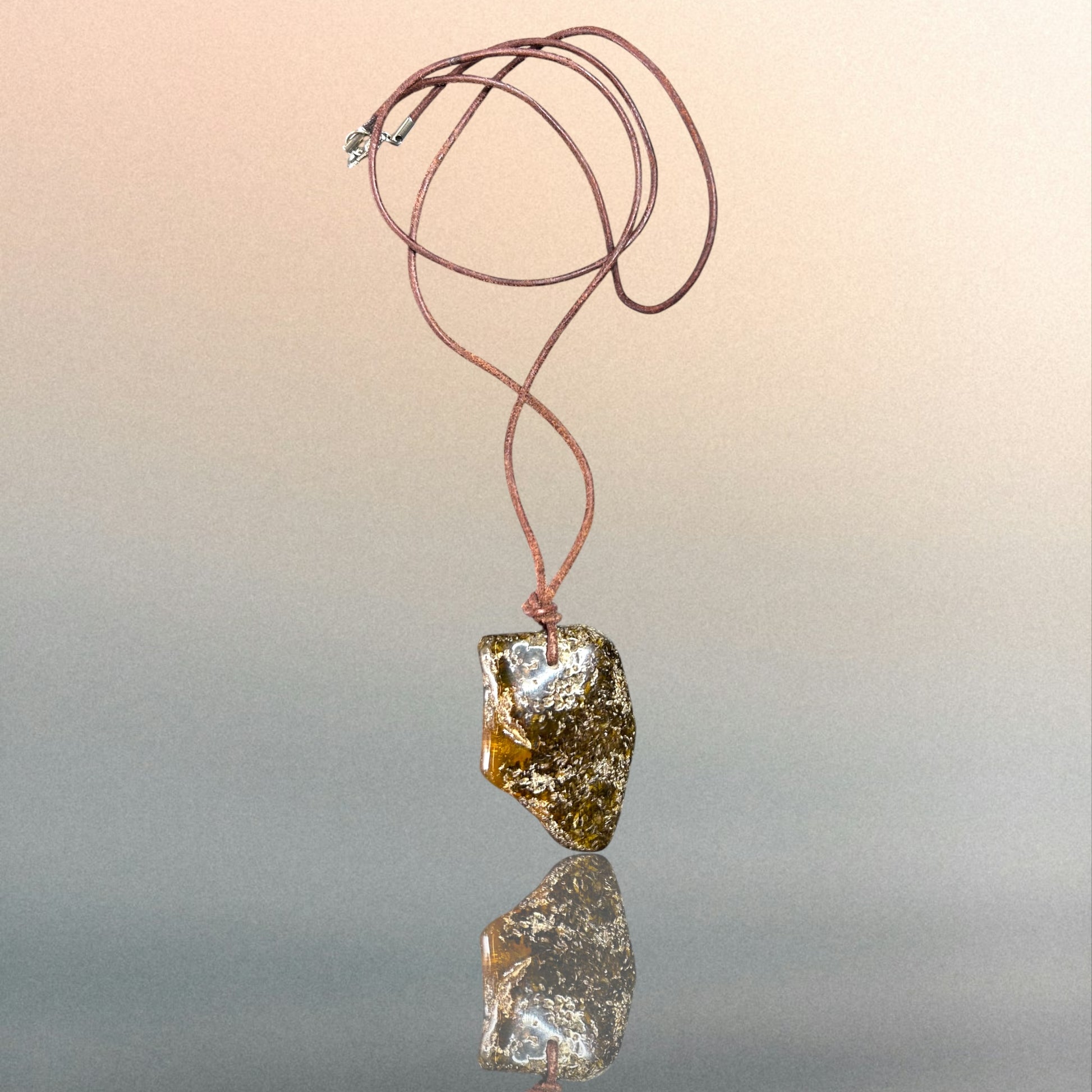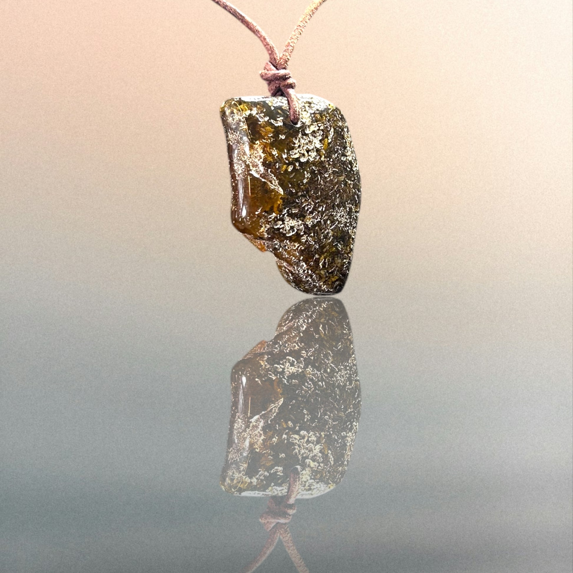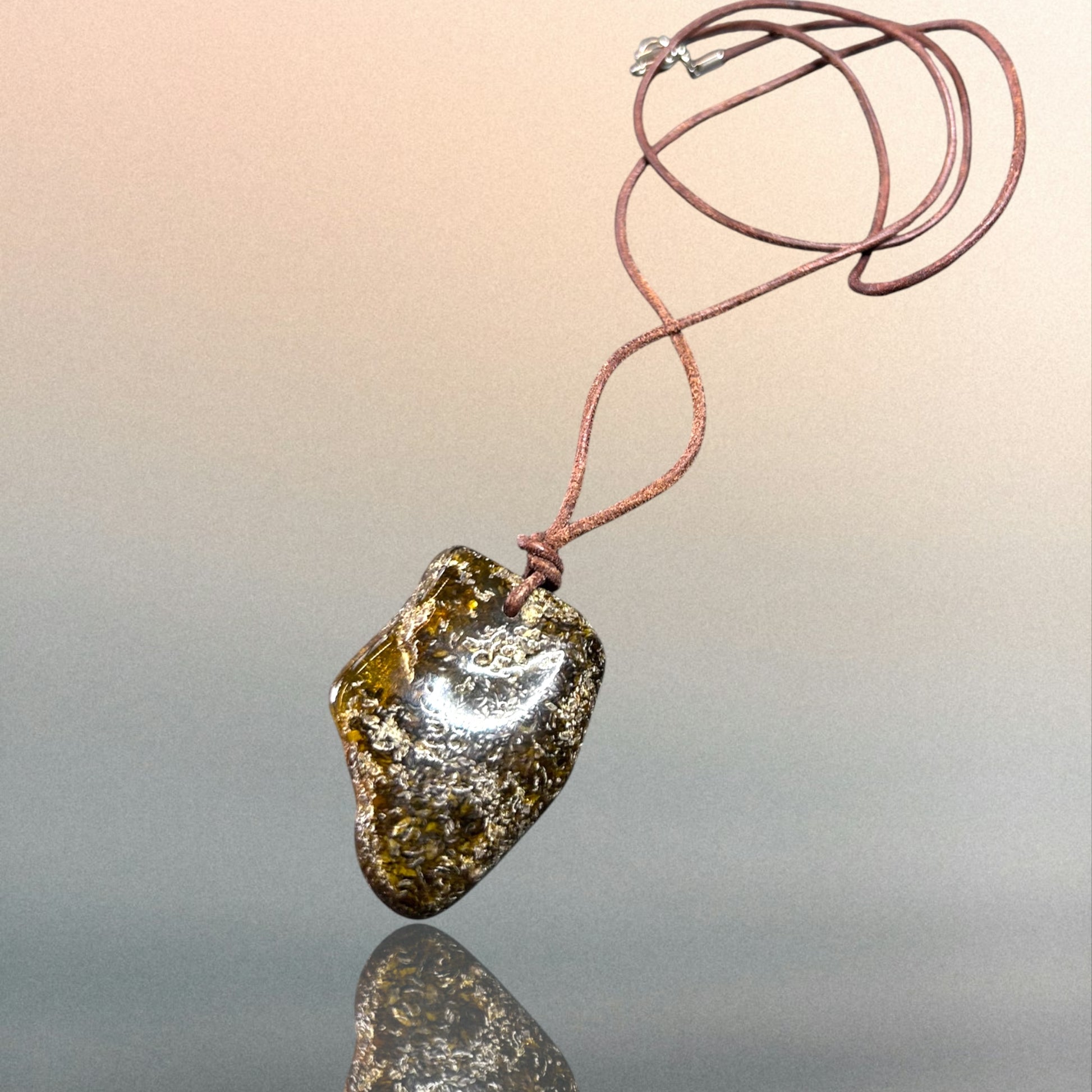 großer Kettenanhänger aus Brackbernstein an einer Lederkette