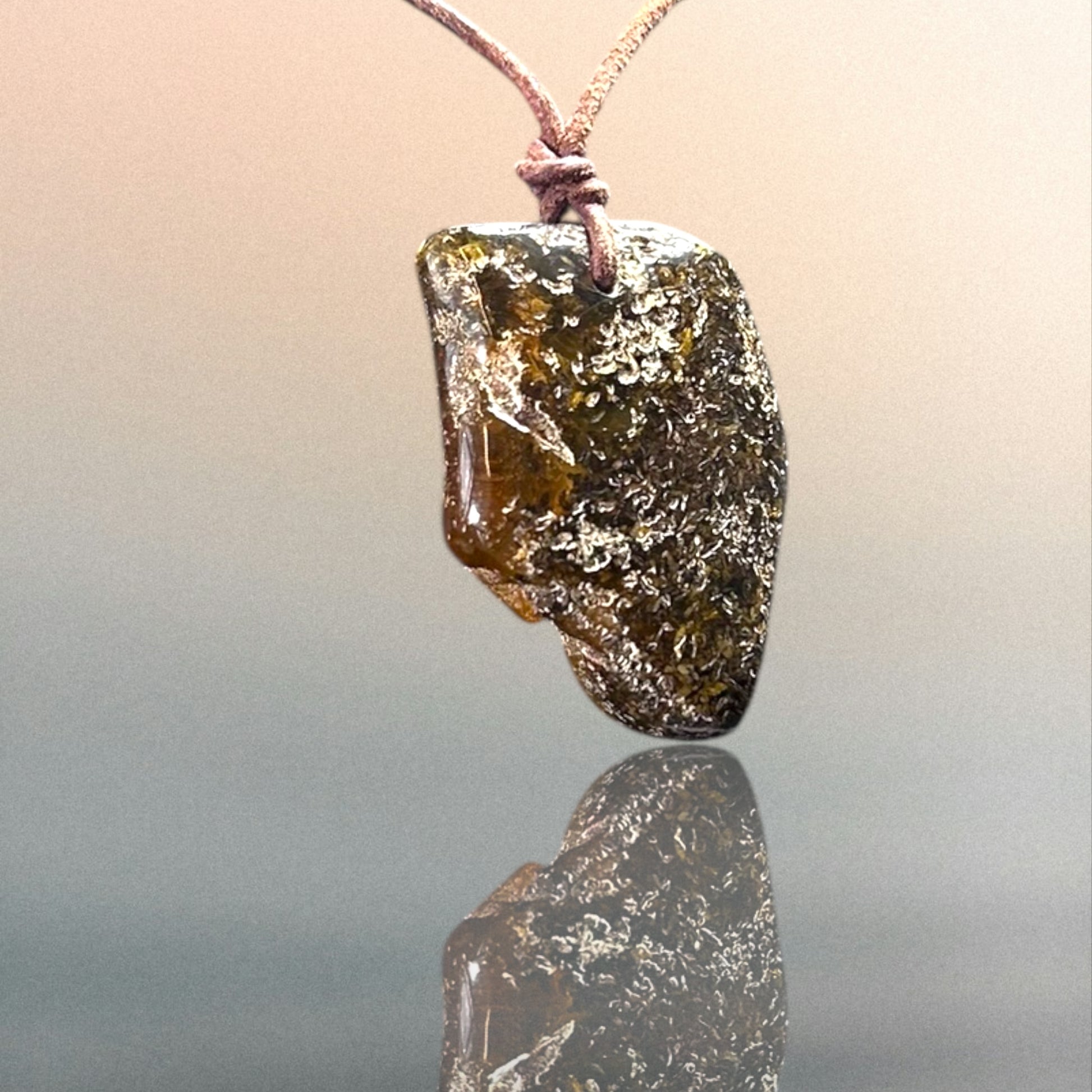 Natürliche Schönheit: Genieße die organische Form und die warmen Farben des Bernsteins.