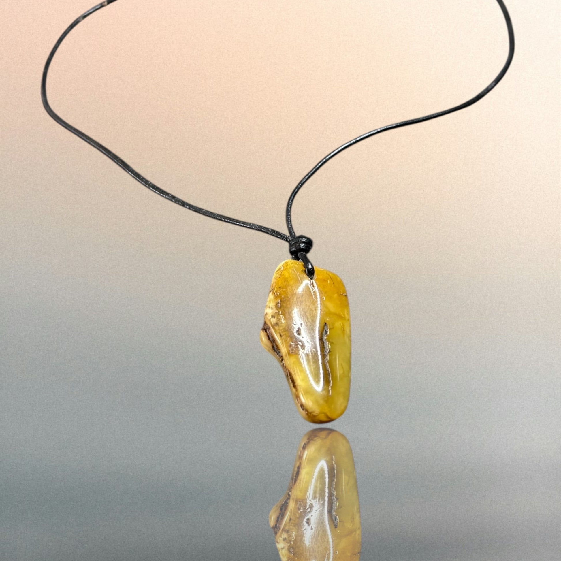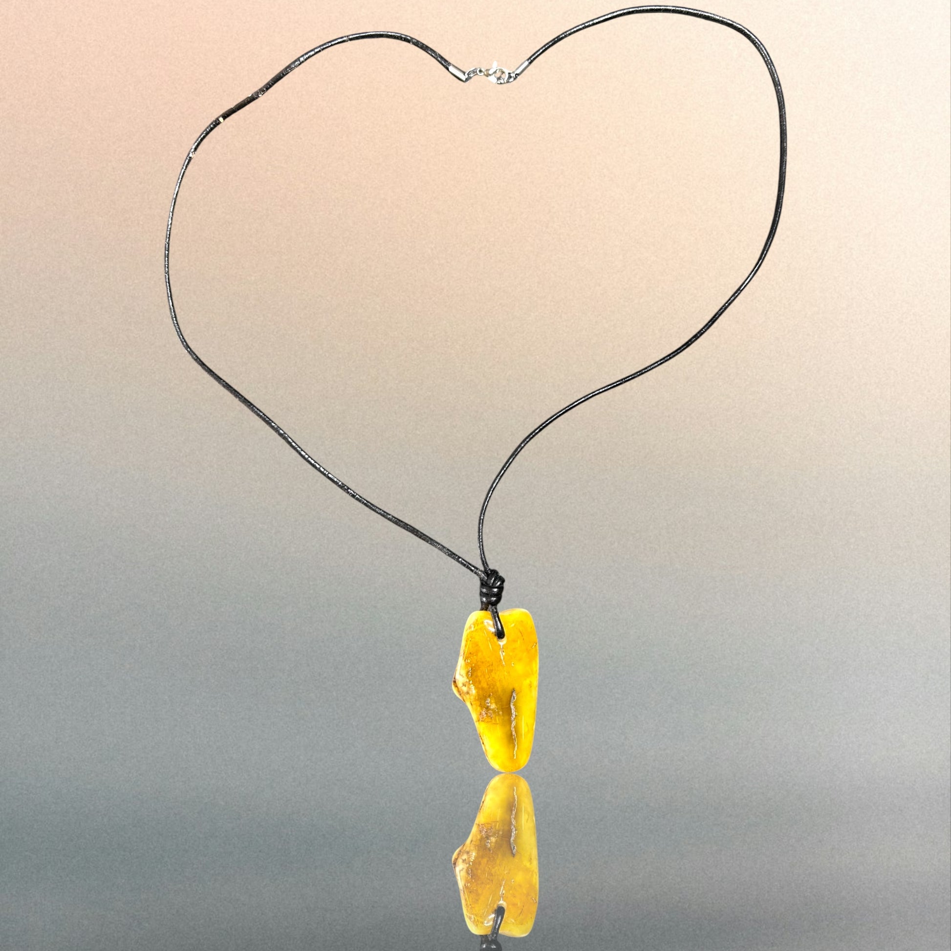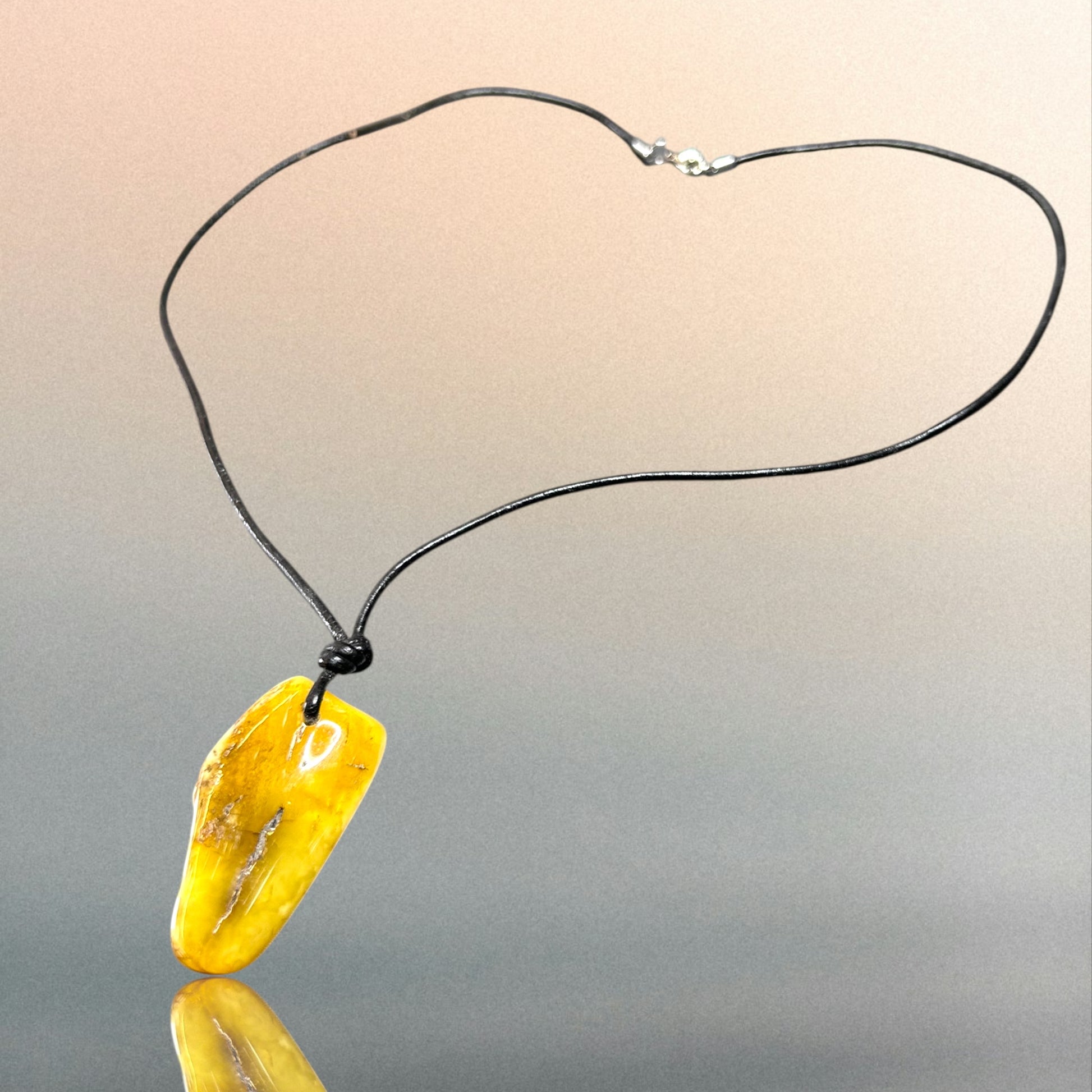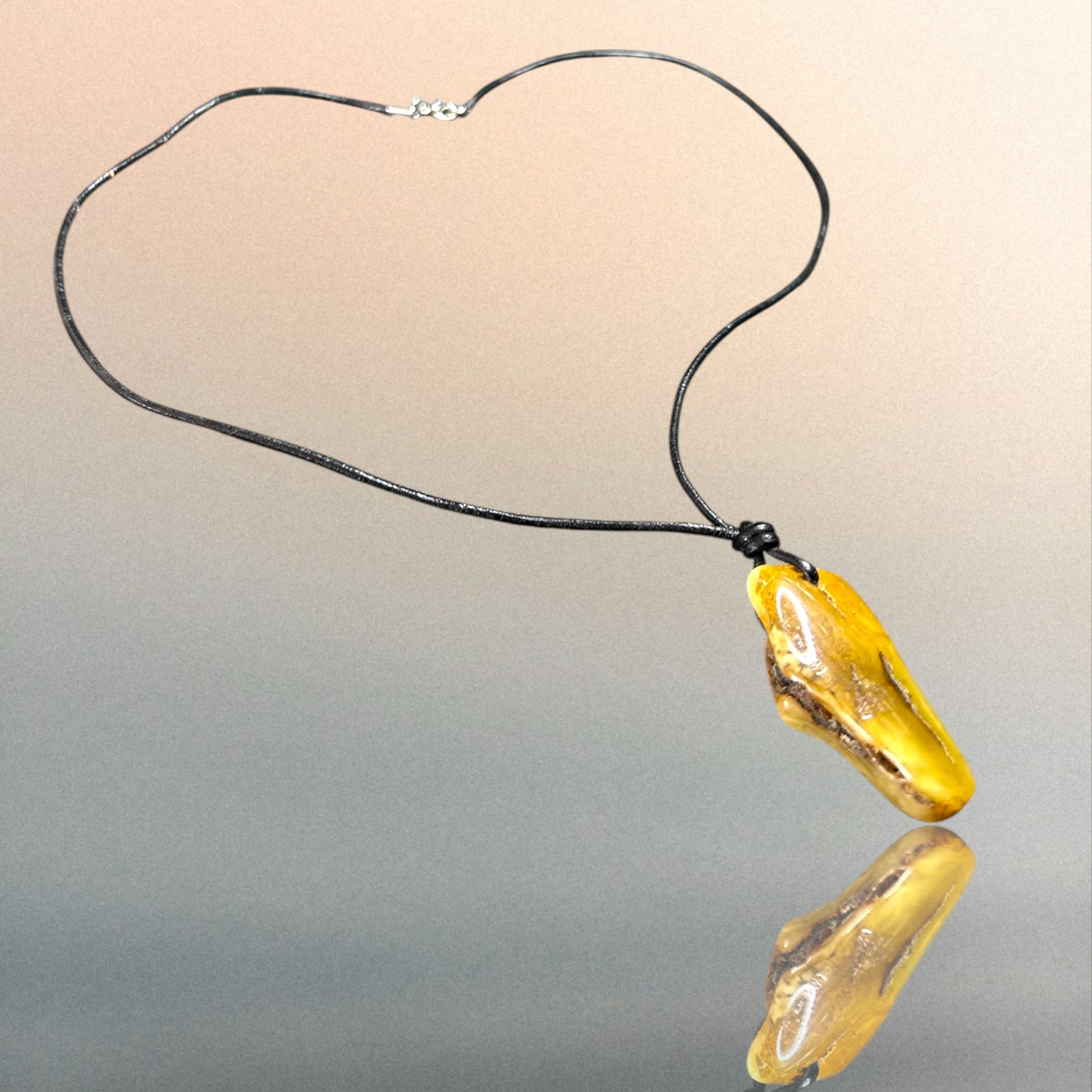 großer Kettenanhänger aus Bernstein an einer Lederkette