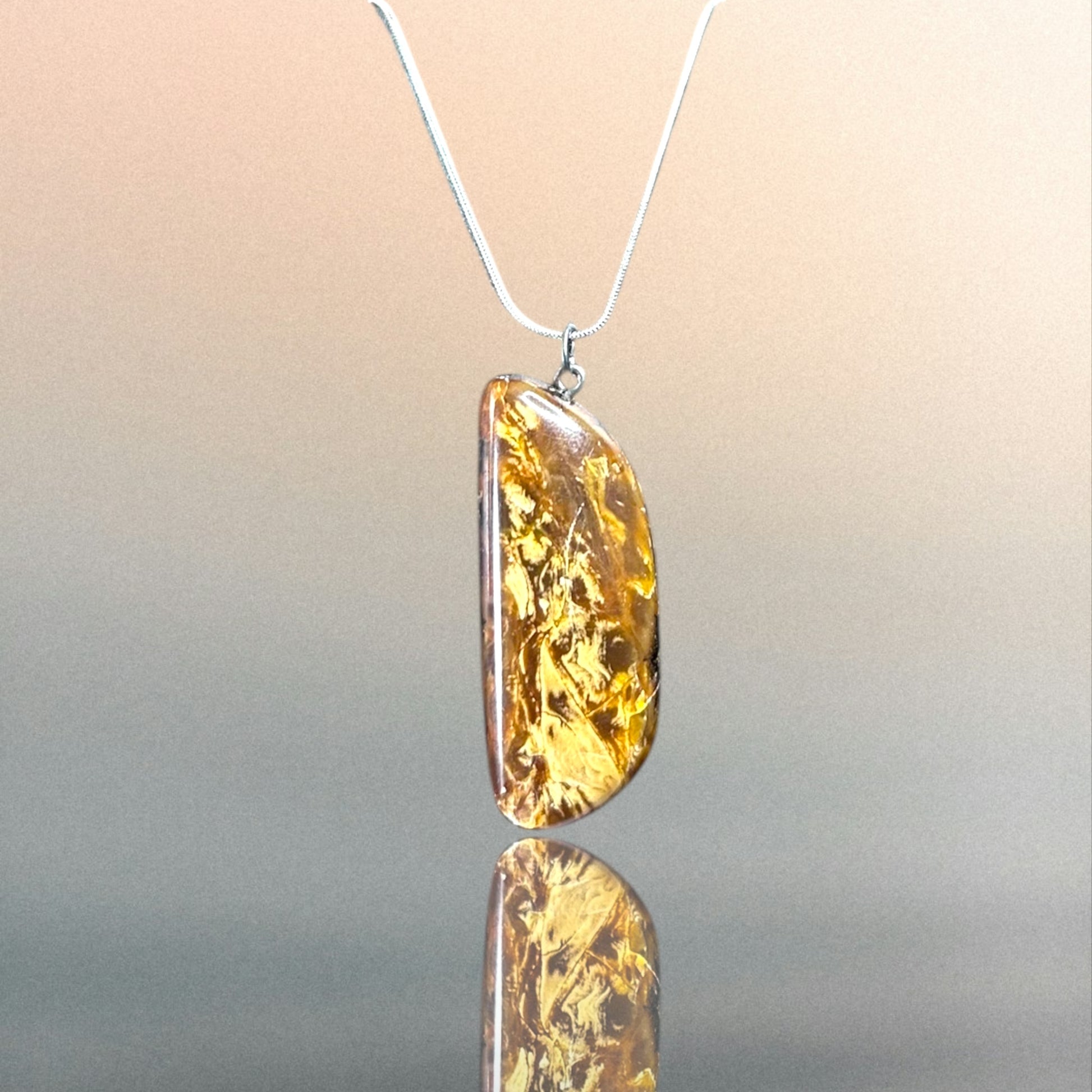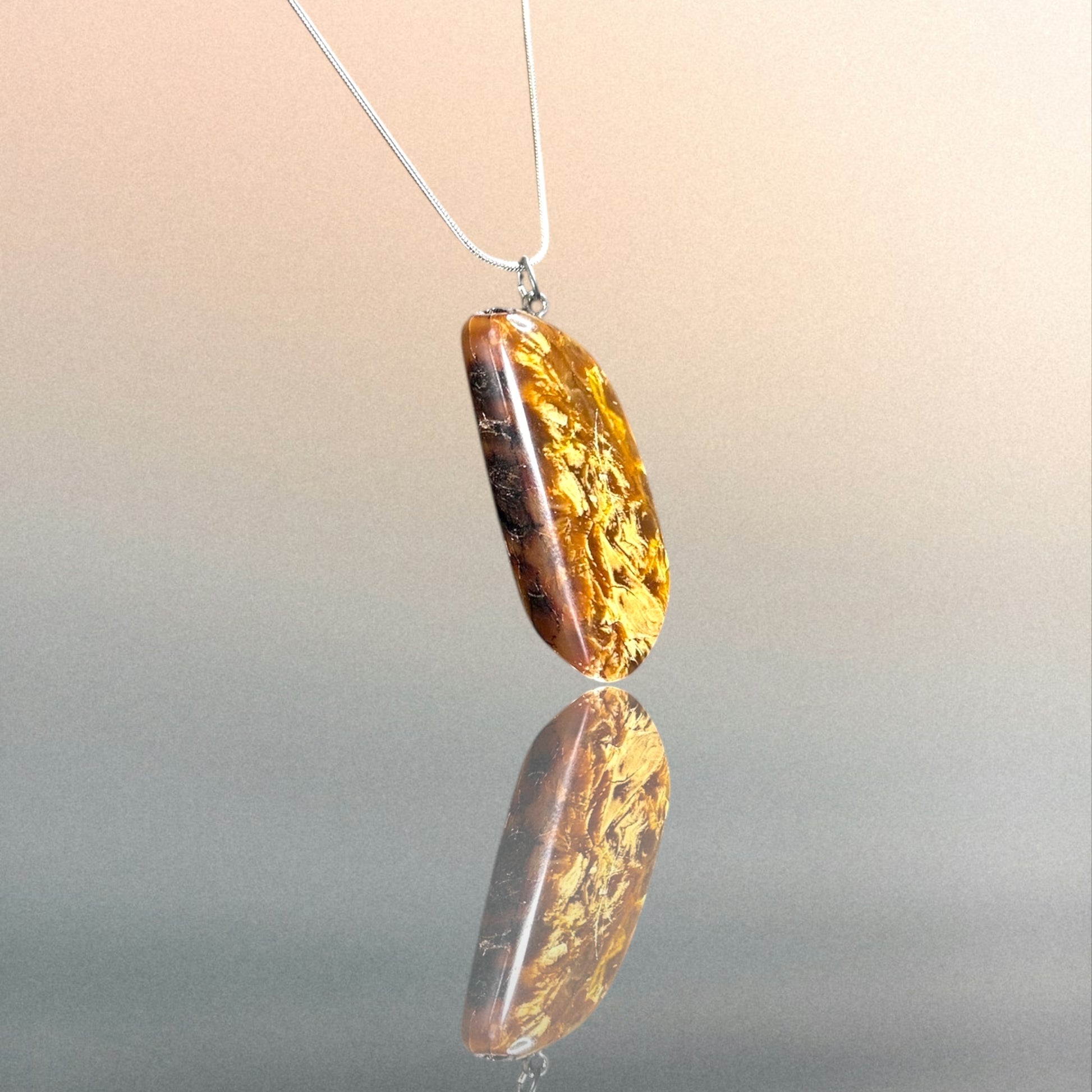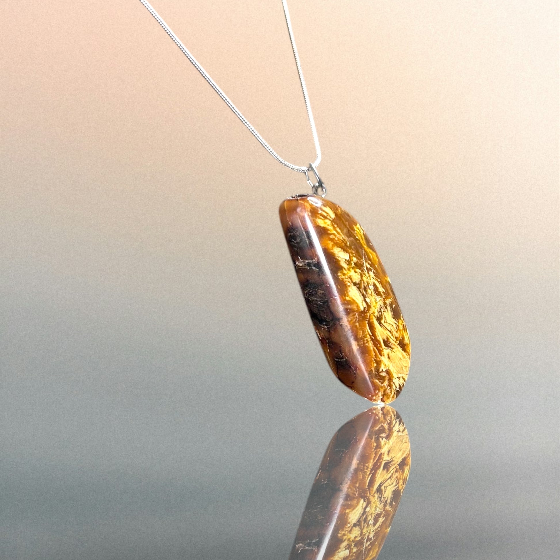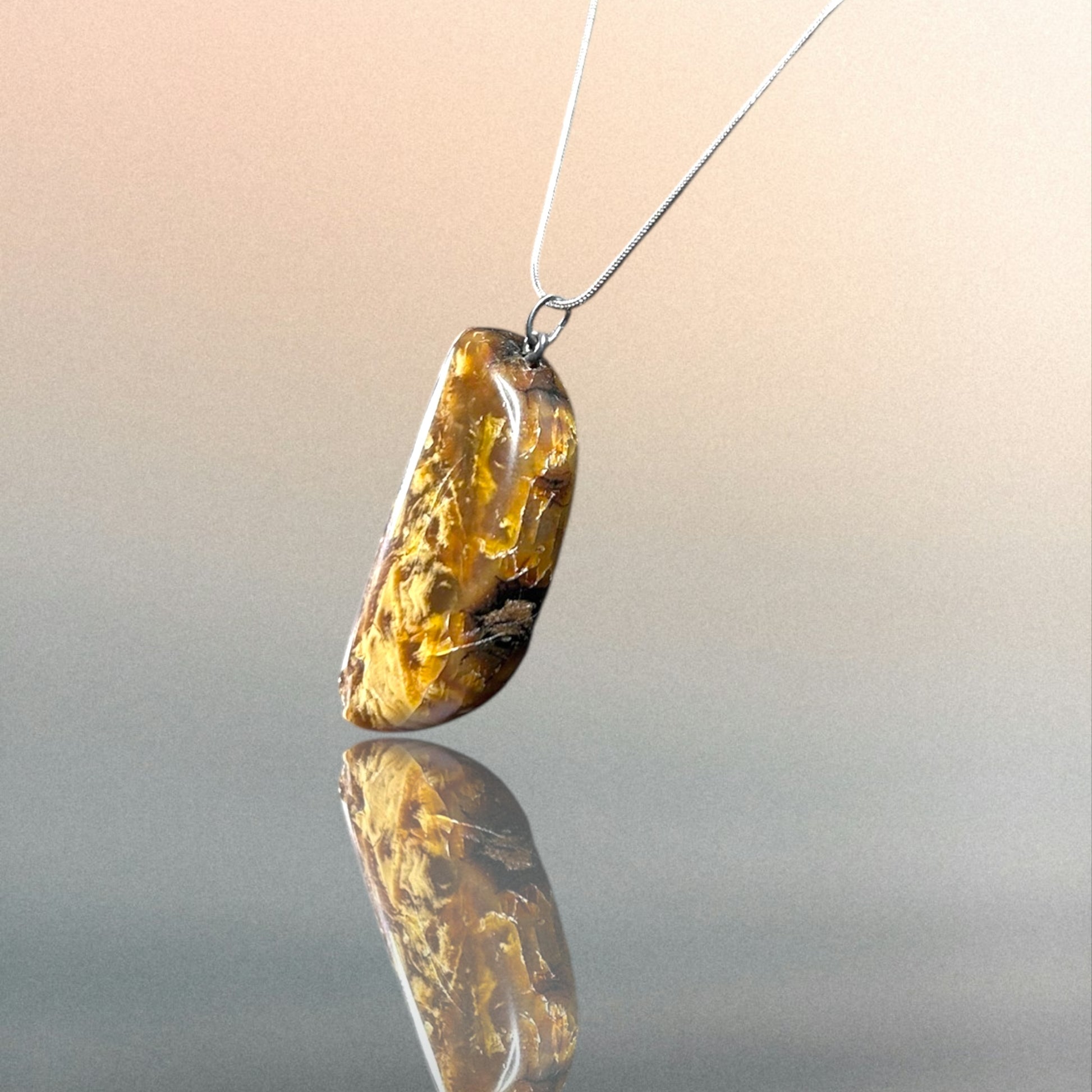 Kettenanhänger aus indonesischem Bernstein an einer Edelstahlkette