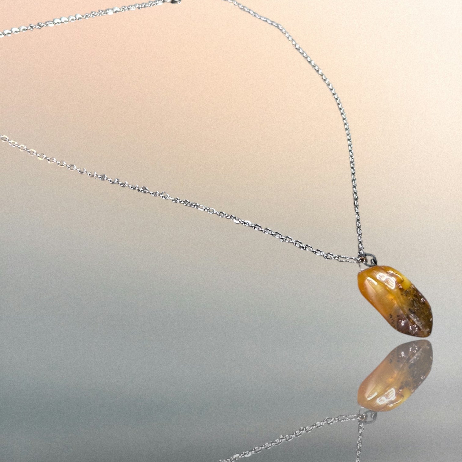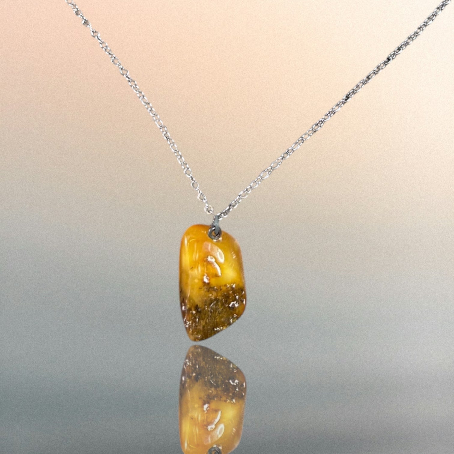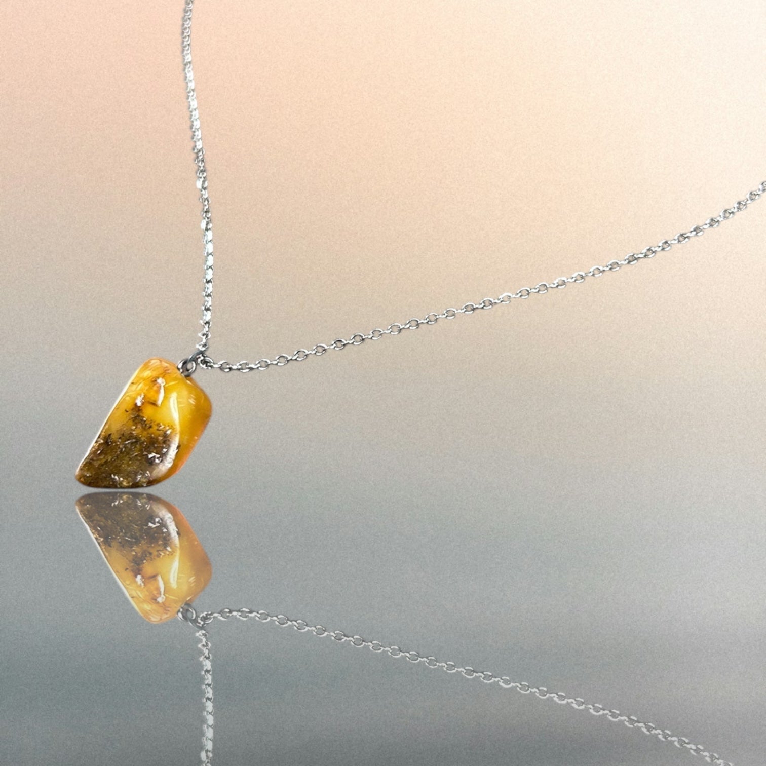 Kettenanhänger aus Bernstein an einer Edelstahlkette