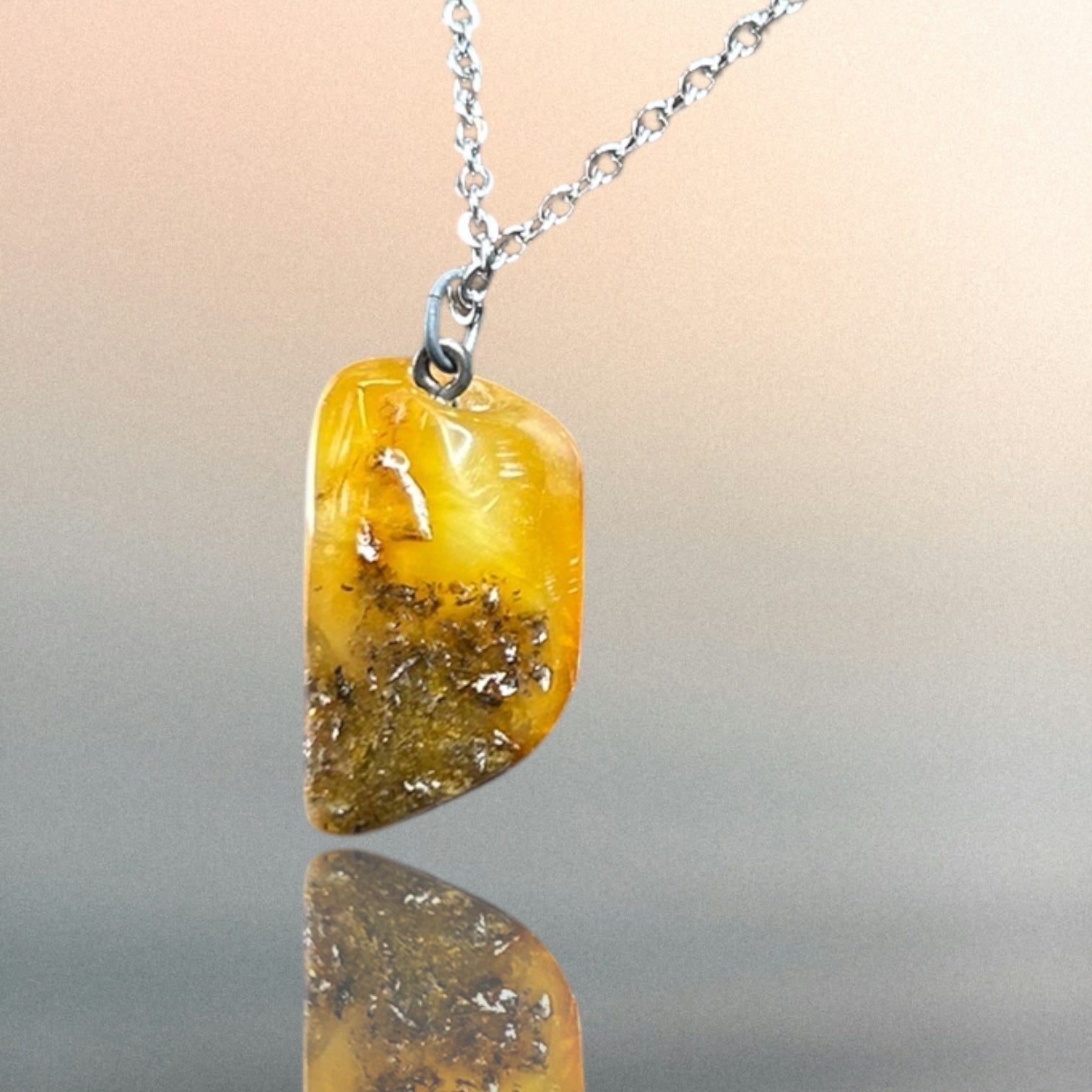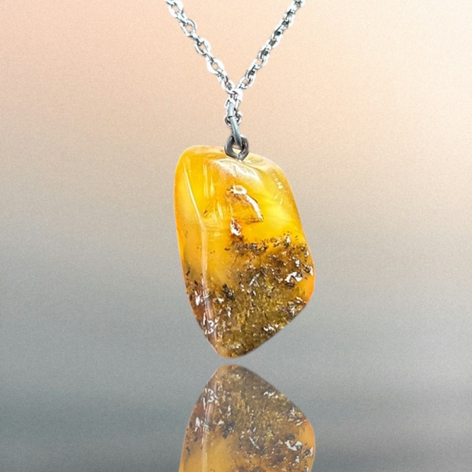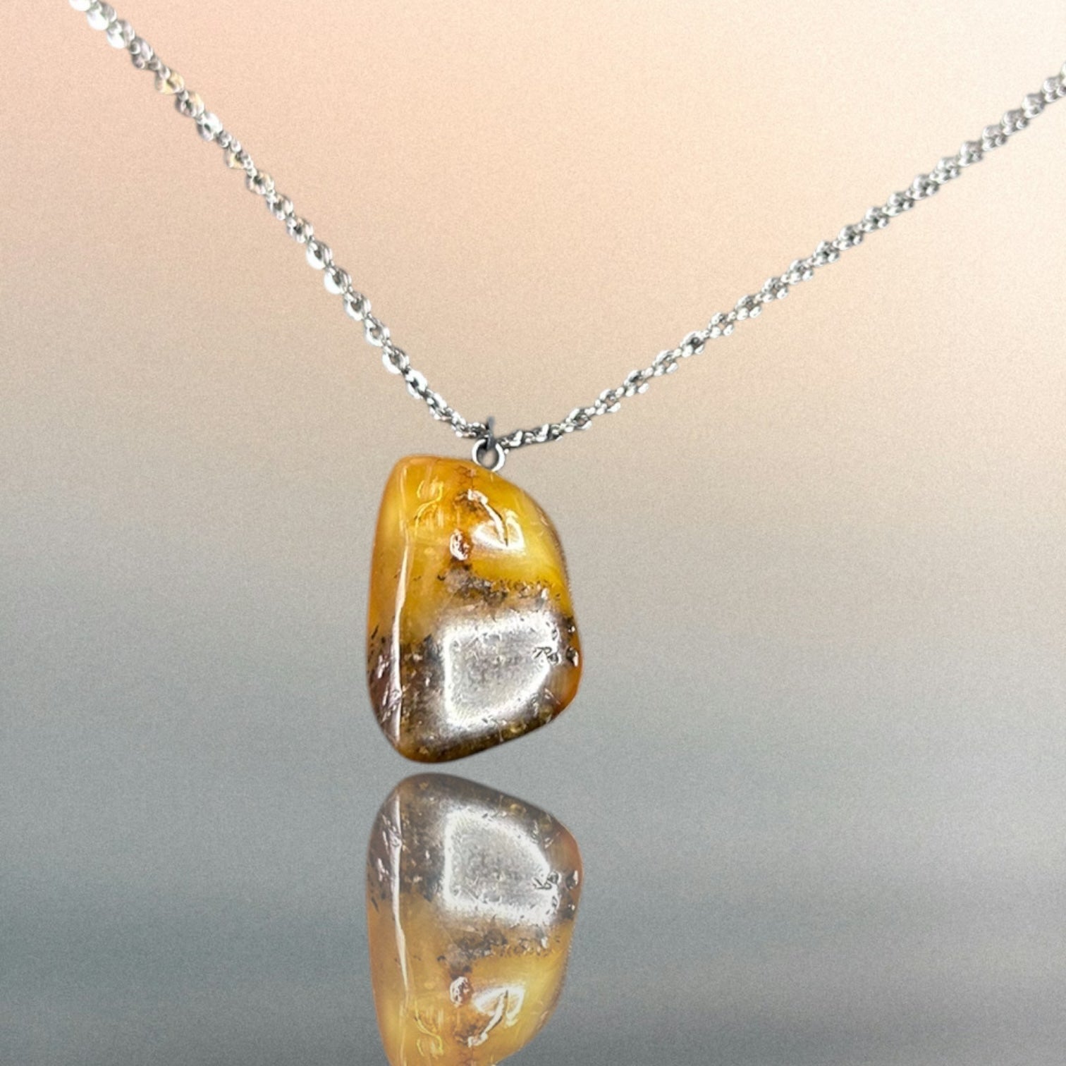 Kettenanhänger aus Bernstein an einer Edelstahlkette