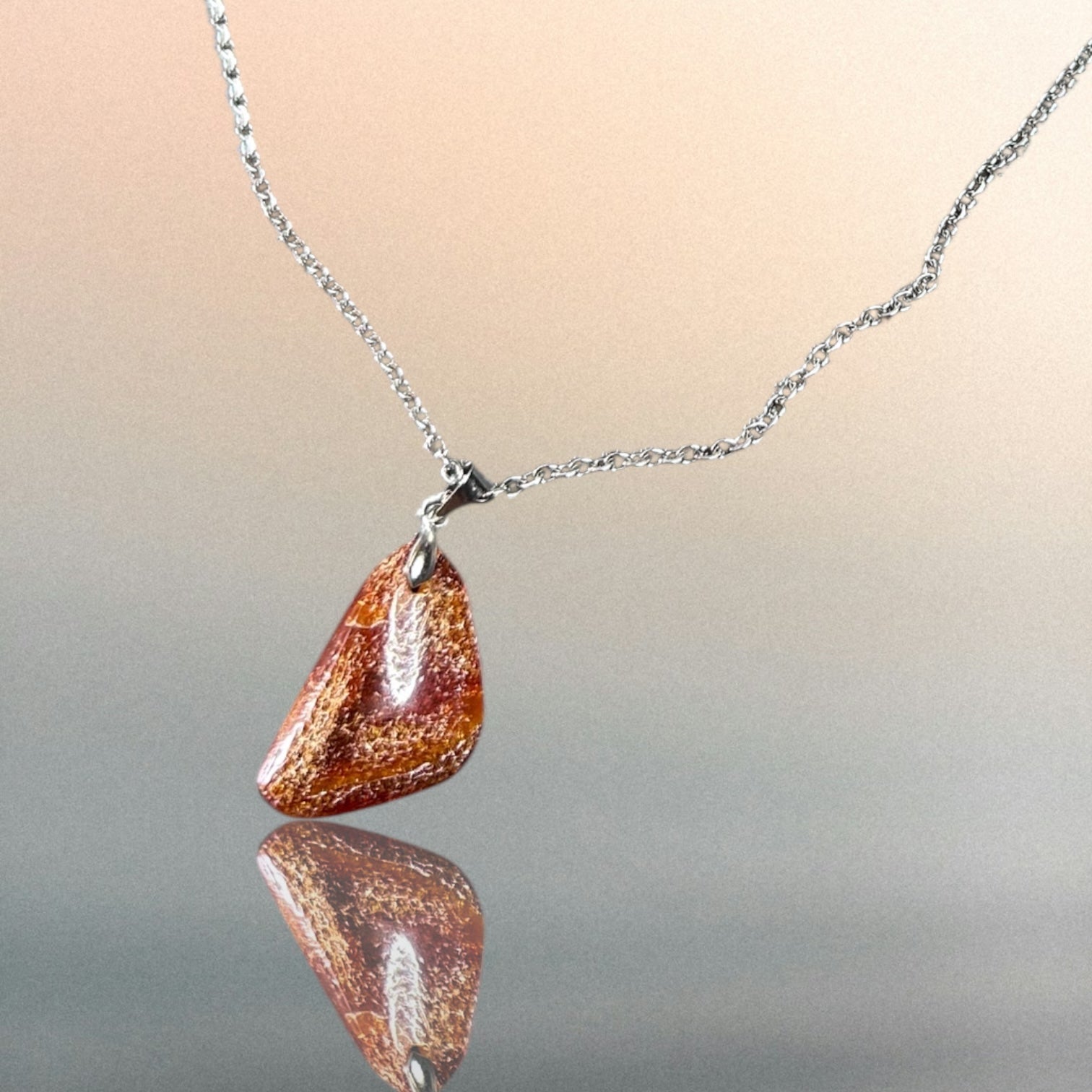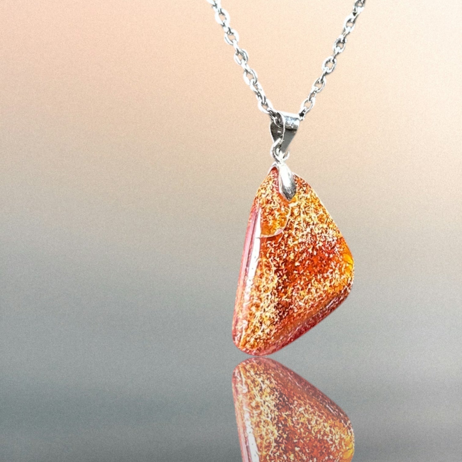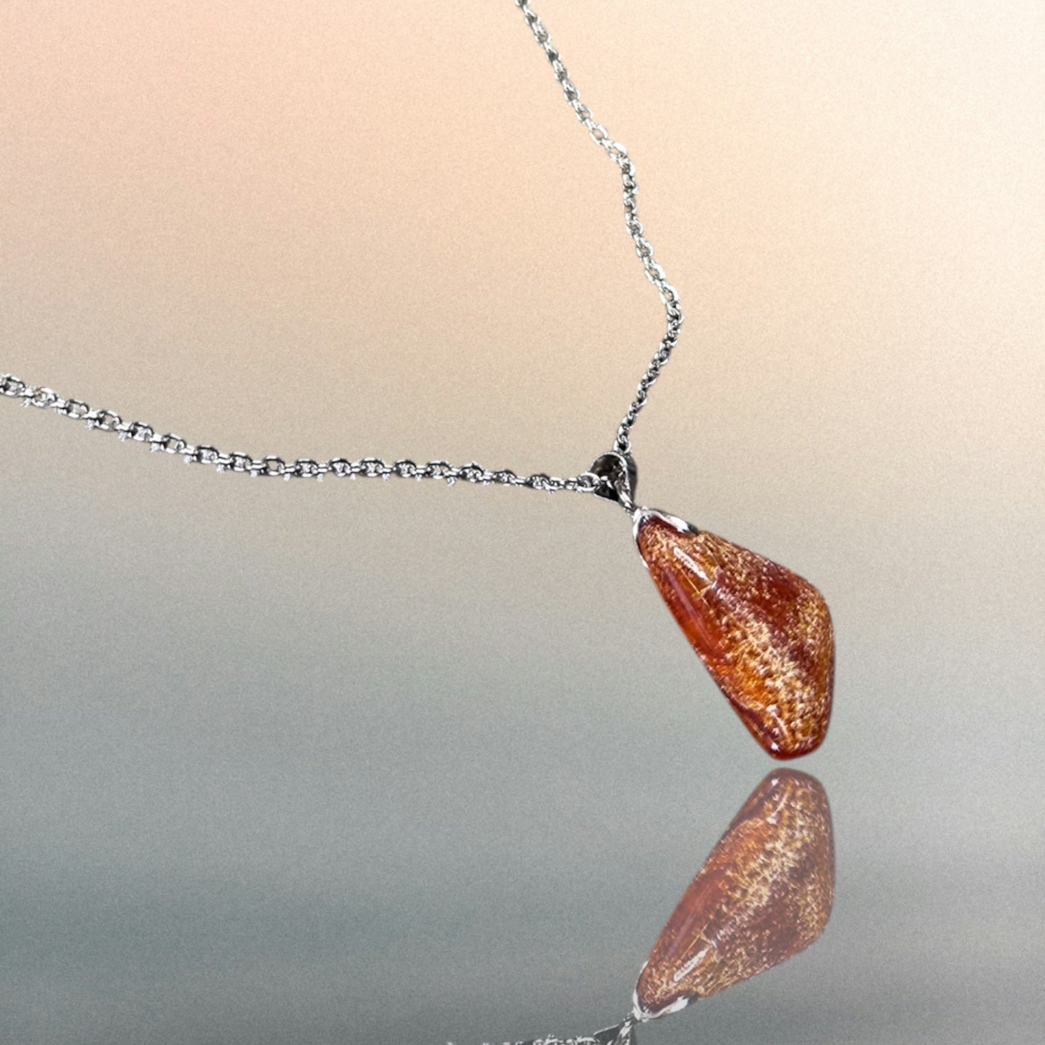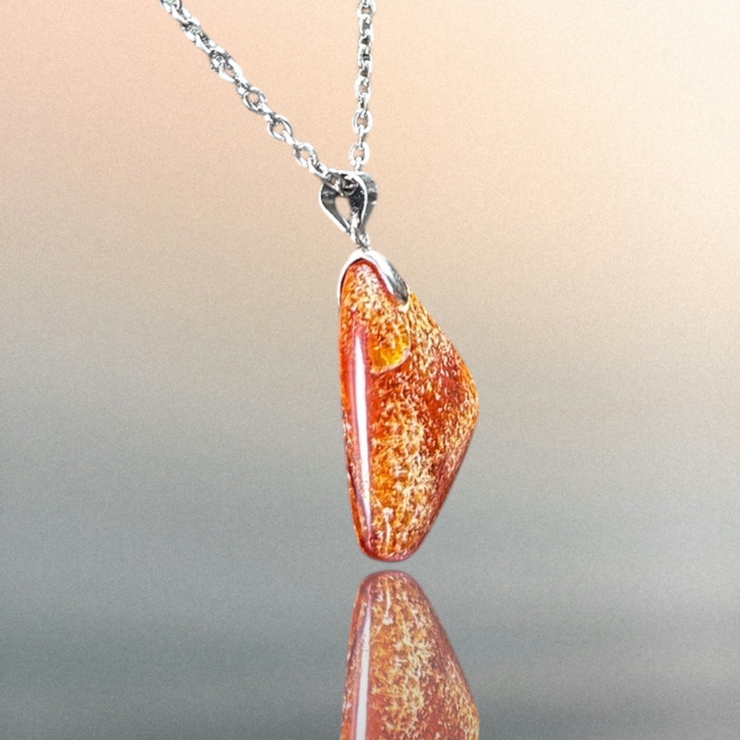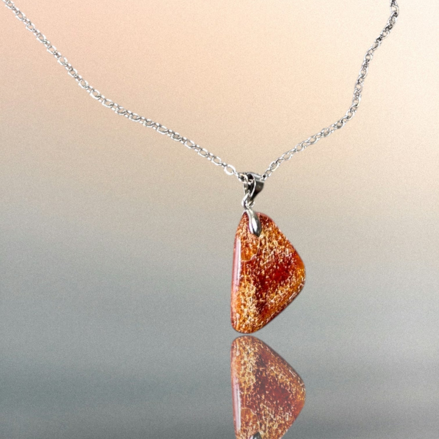 Kettenanhänger aus Bernstein an einer Edelstahlkette