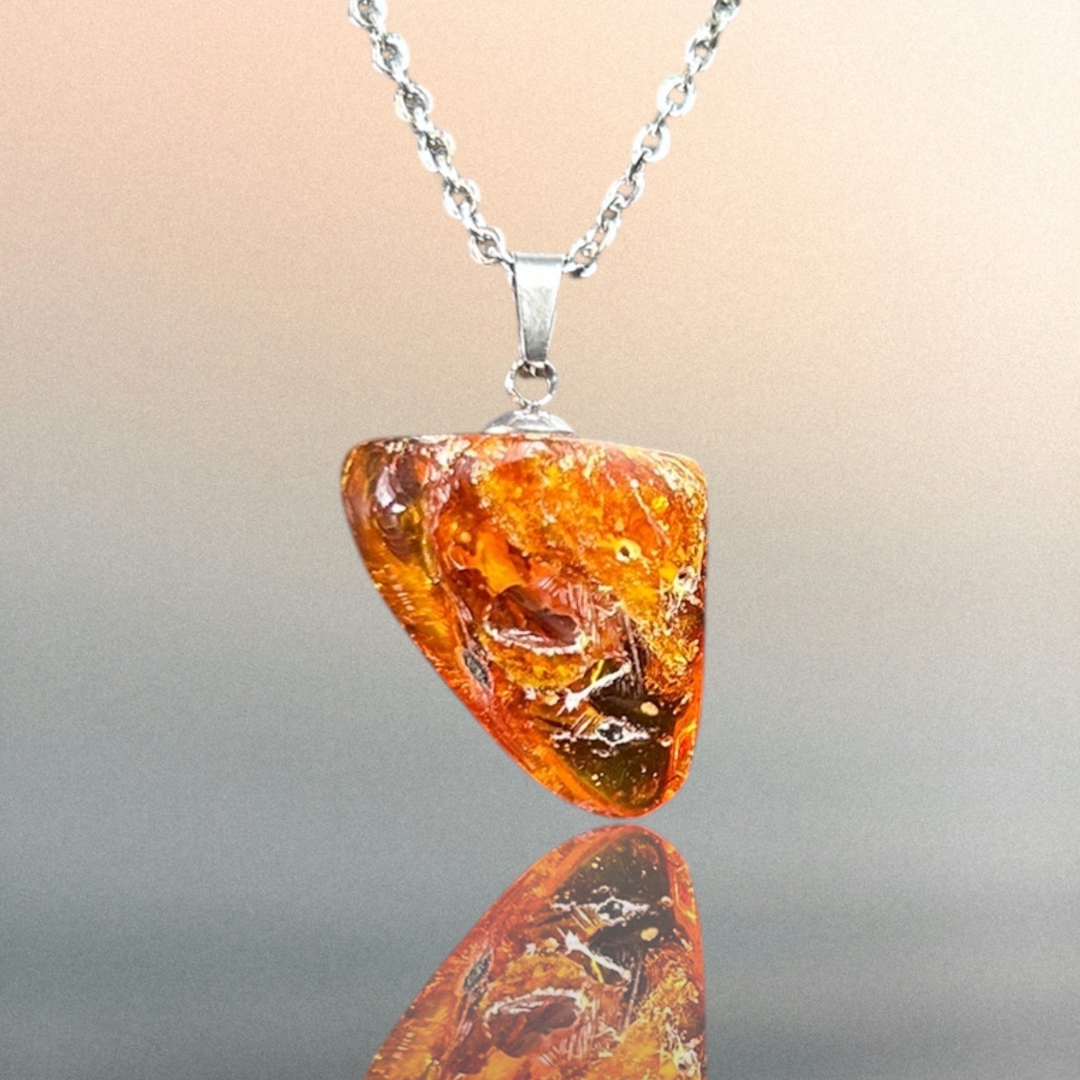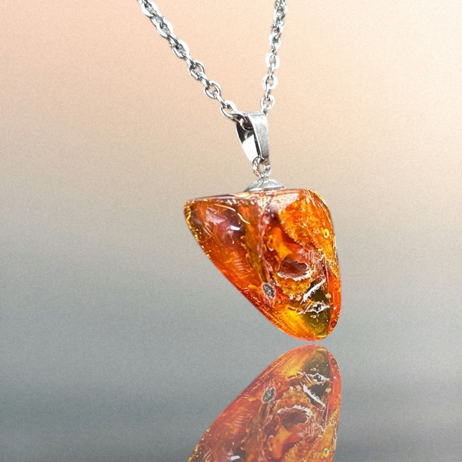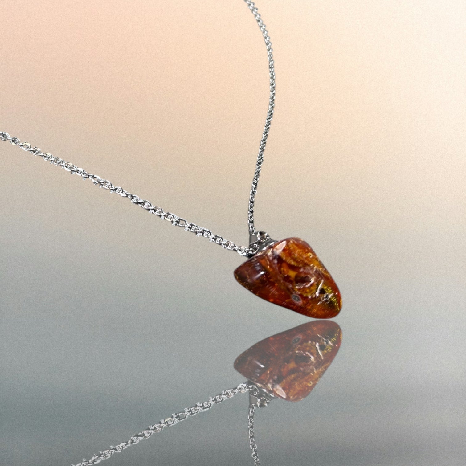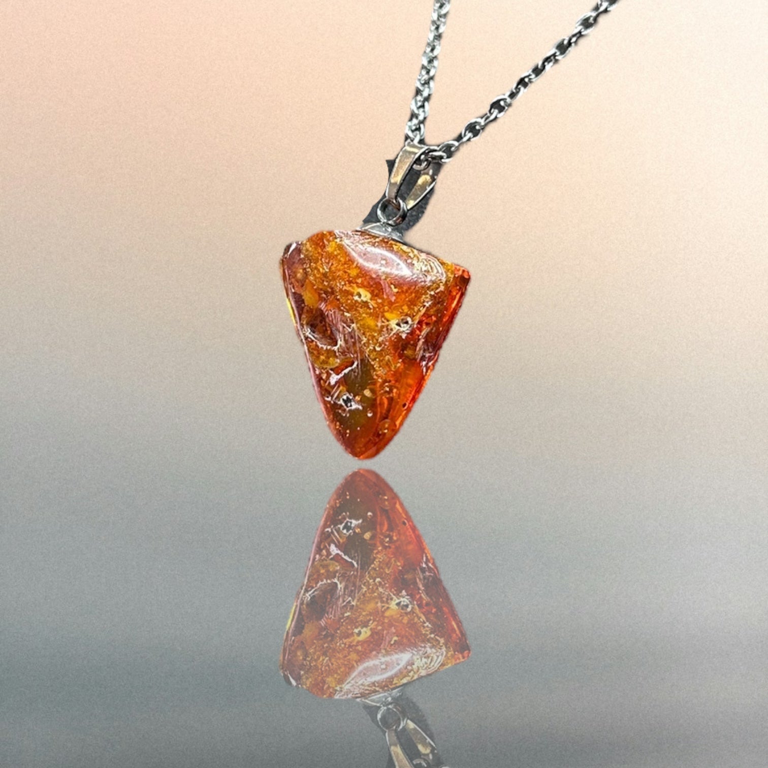 Kettenanhänger aus Bernstein an einer Edelstahlkette