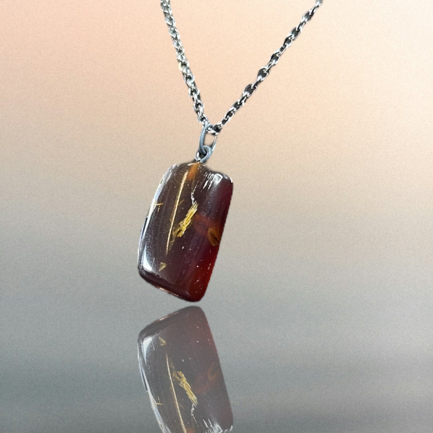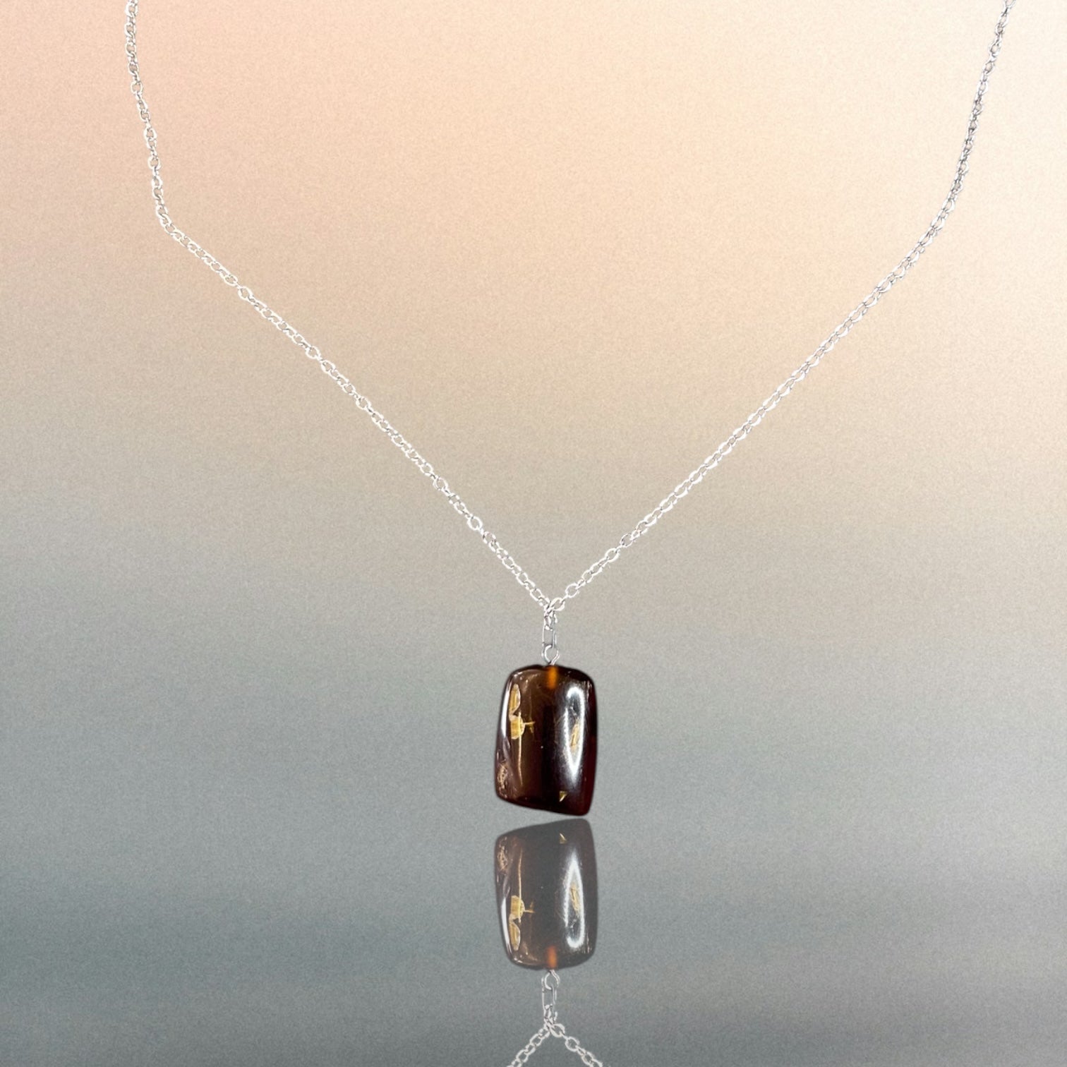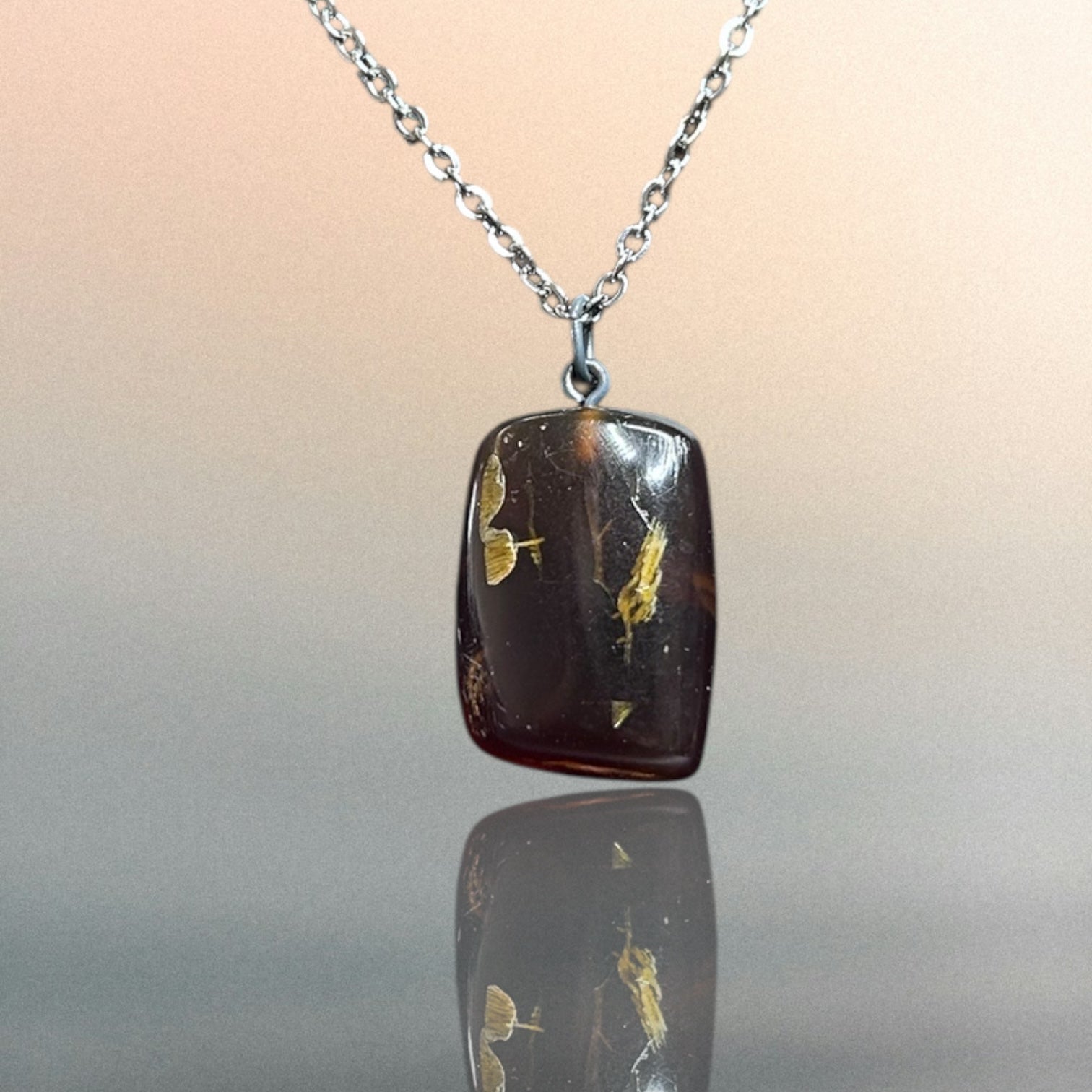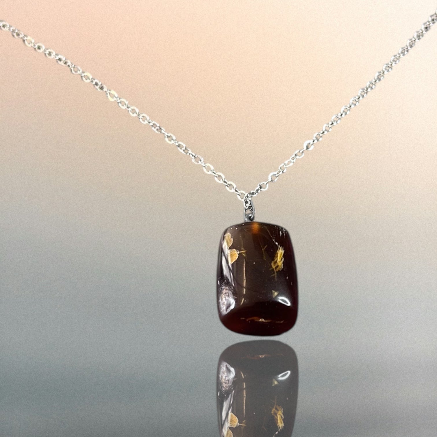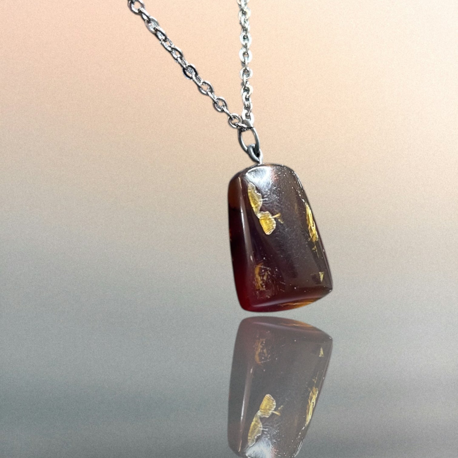 Kettenanhänger aus indonesischem Bernstein an einer Edelstahlkette