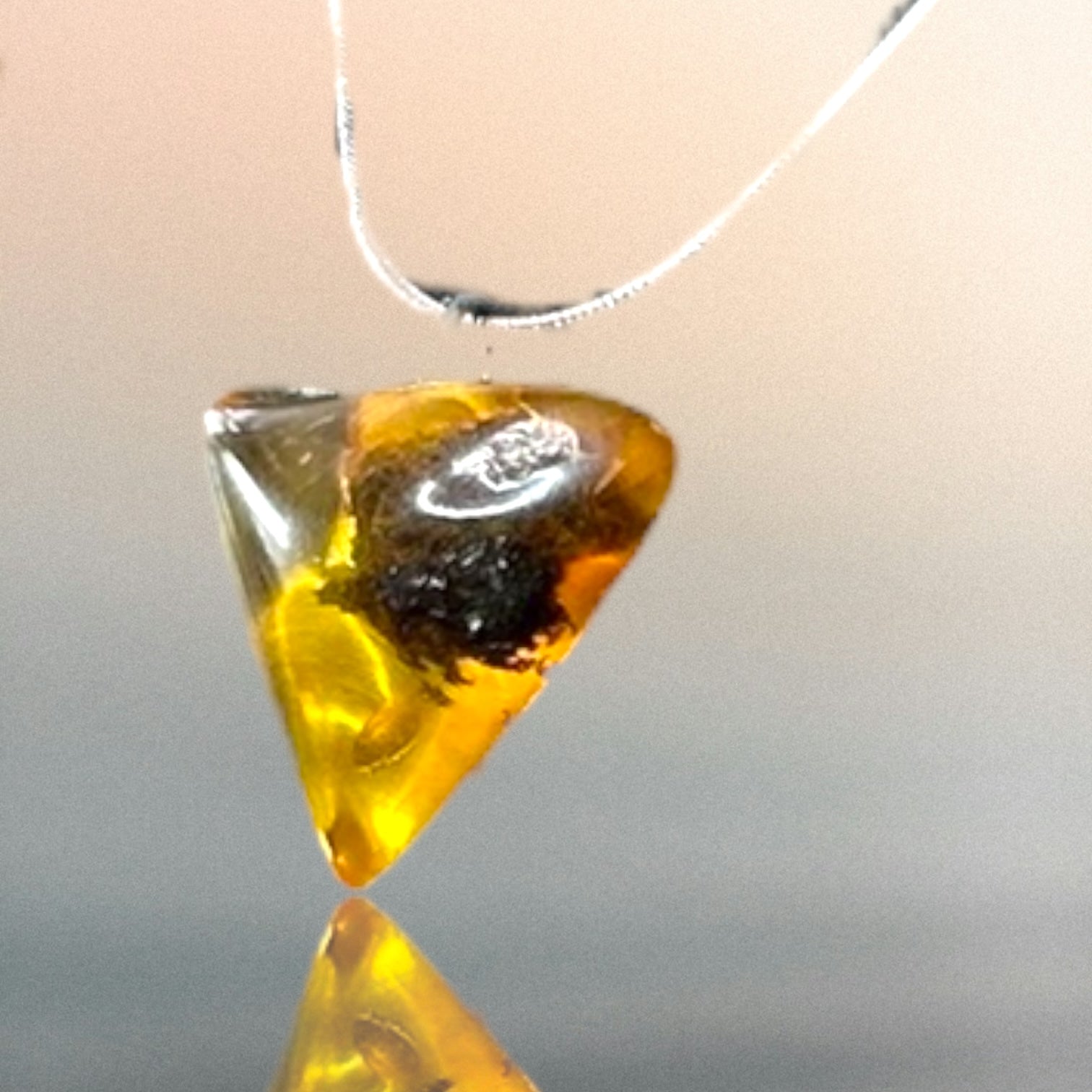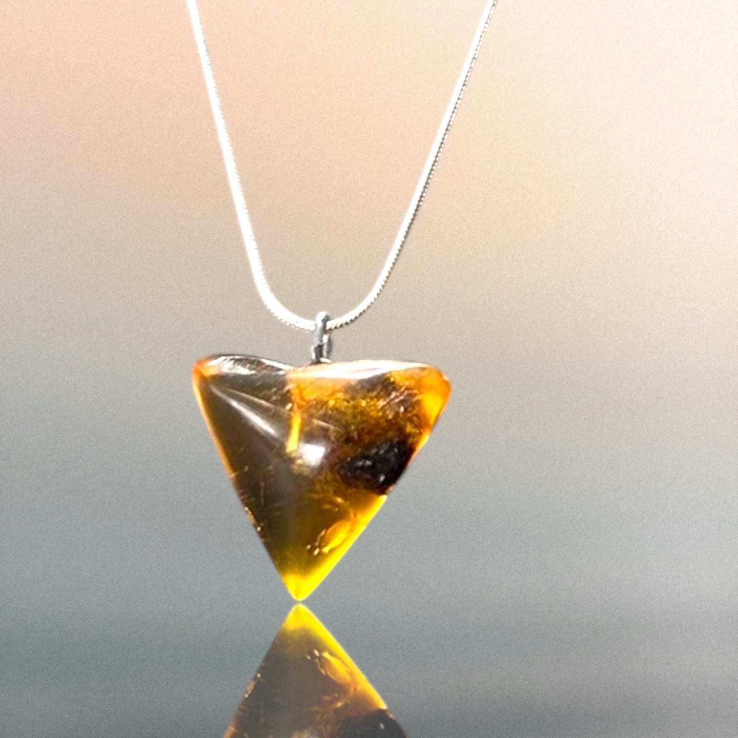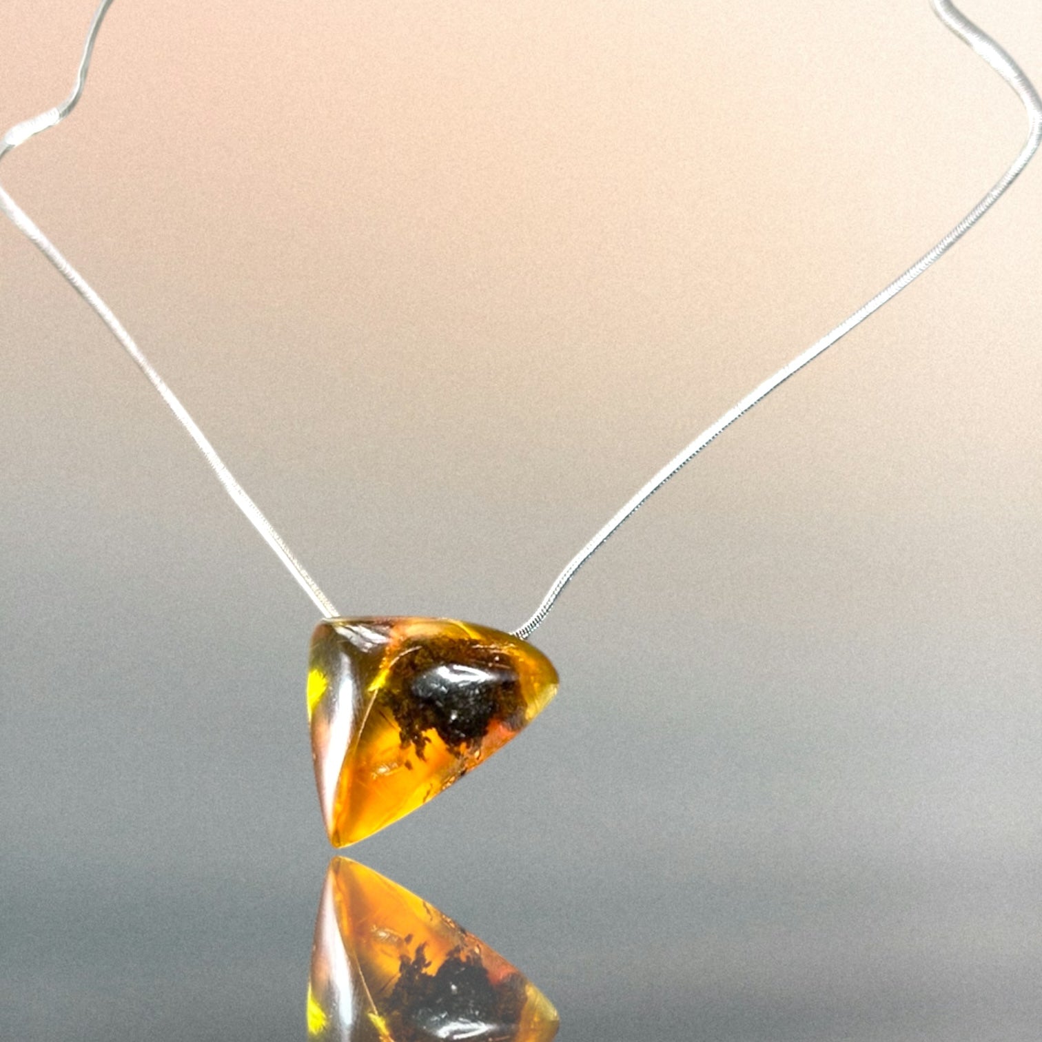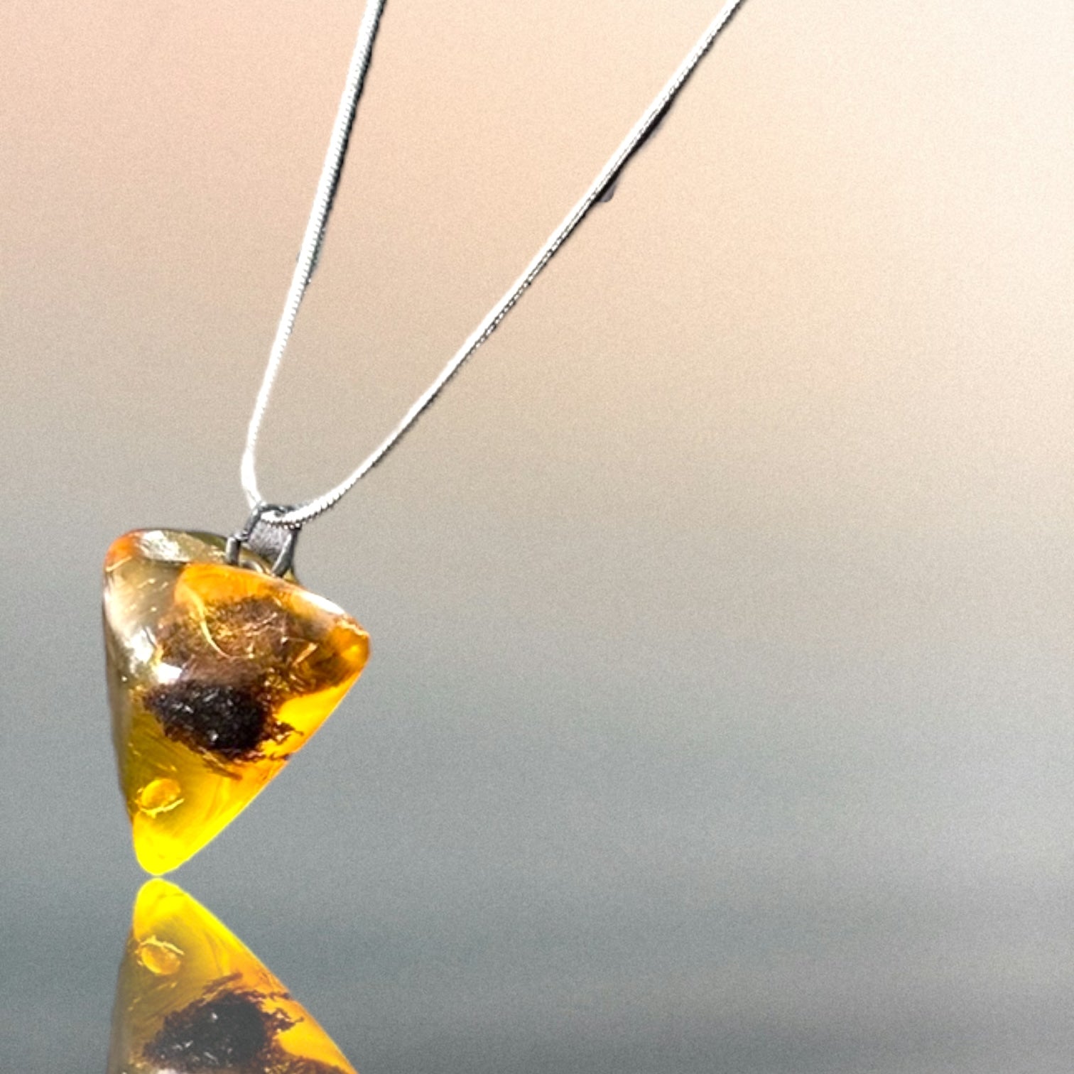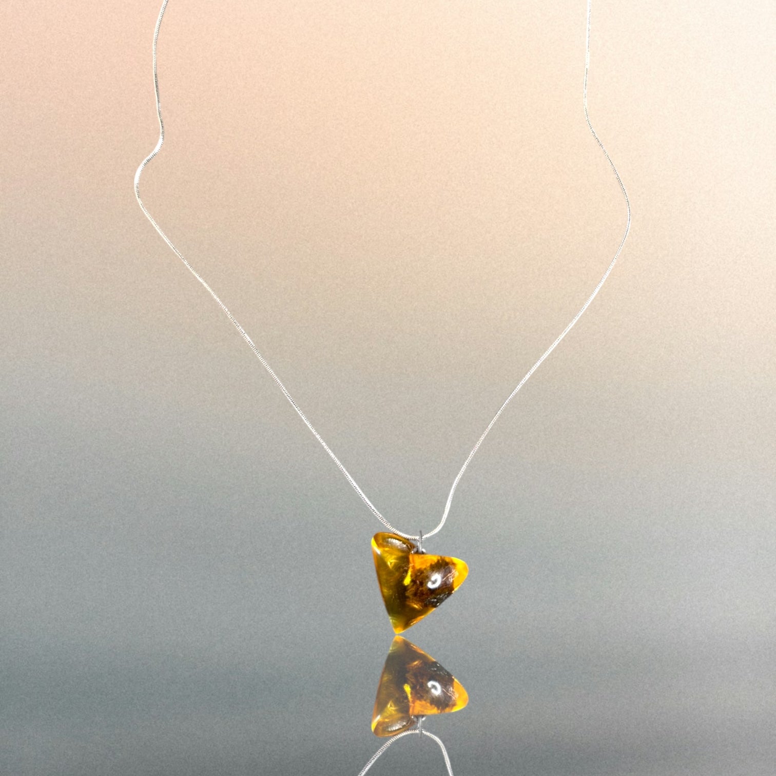 Kettenanhänger aus Bernstein an einer Edelstahlkette