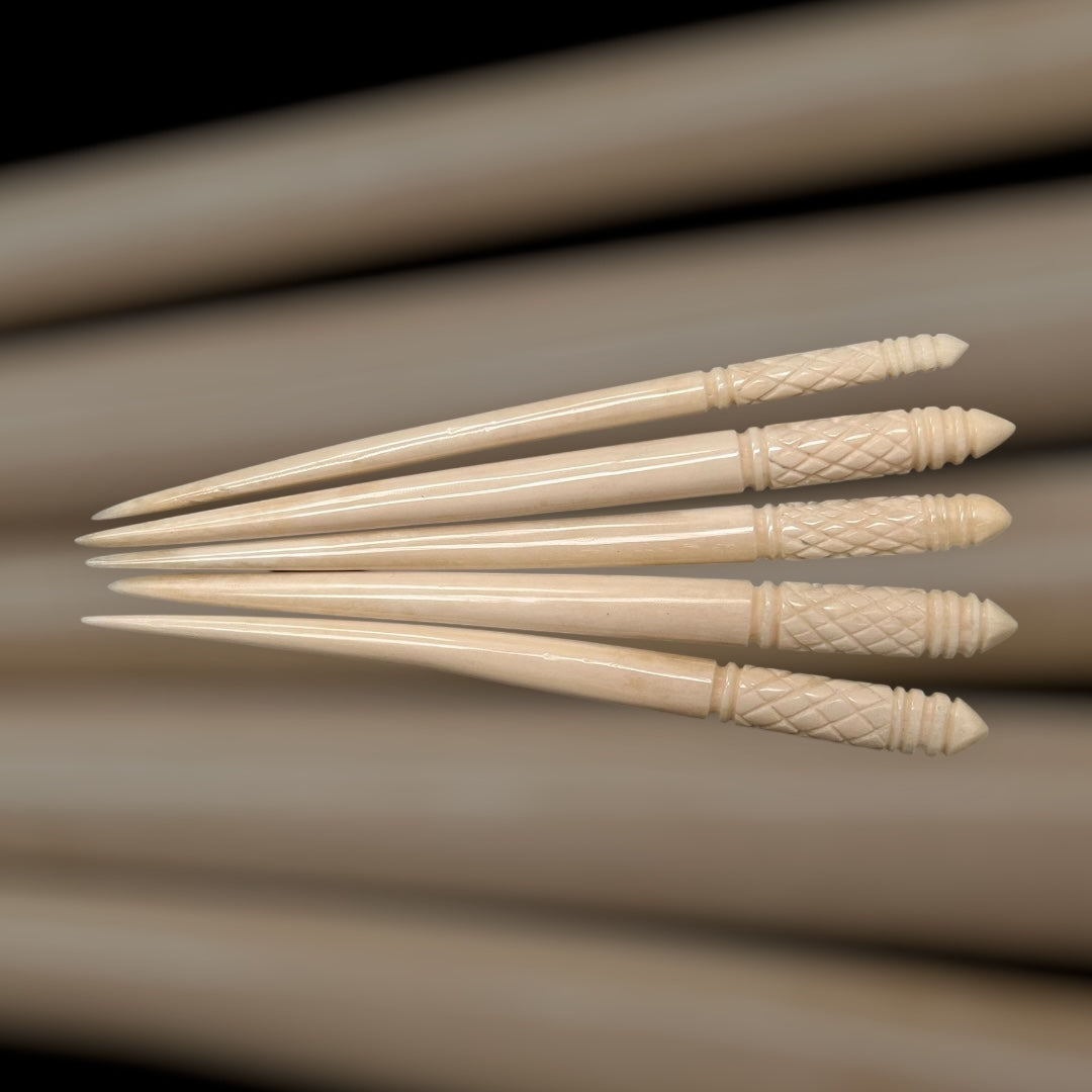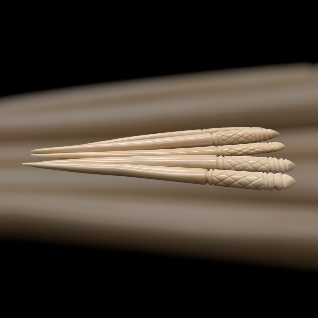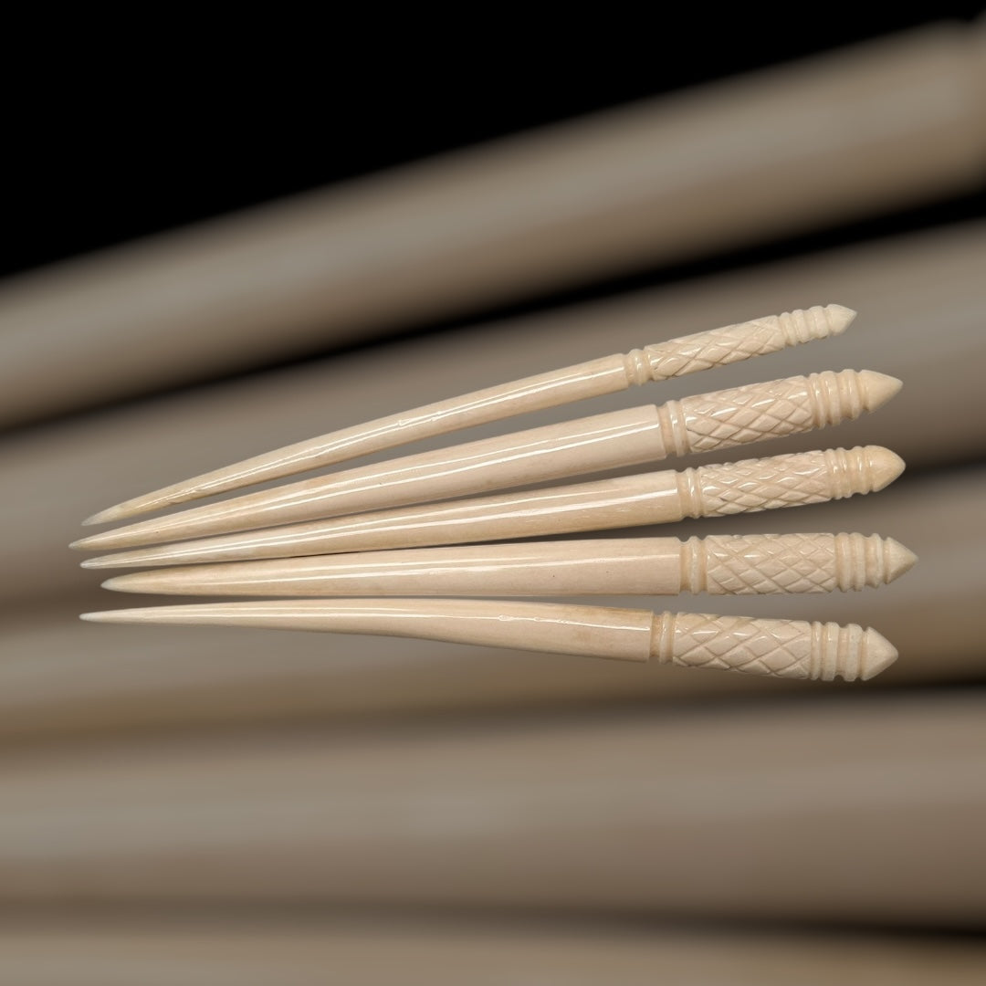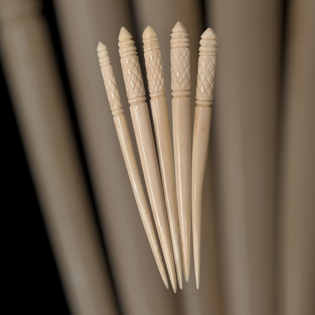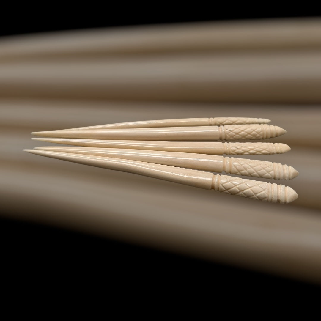 Römische verzierte Haarnadel , 2. Jahrhundert, nach einem Fund aus Xanten, polierter Knochen, ca. 13,5 cm