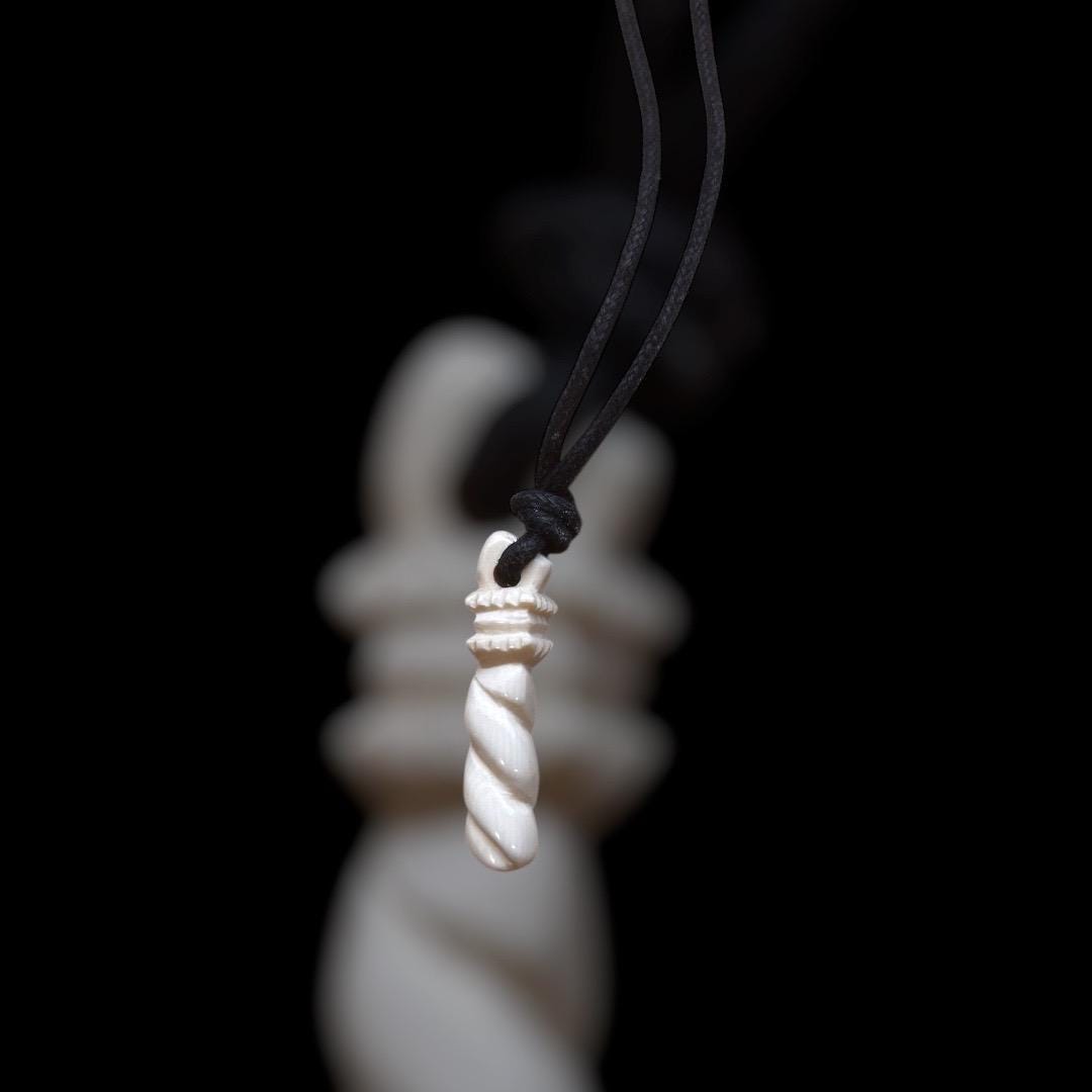 Dieser Kettenanhänger wurde nach einem römischen Fund aus Neapel gefertigt. Wie das Original besteht er aus Rinderknochen und kommt mit einem 2mm schwarzen Baumwollband. Die Keule war eines der Symbole des Gottes Hercules und stand für Stärke sowie Entschlossenheit.