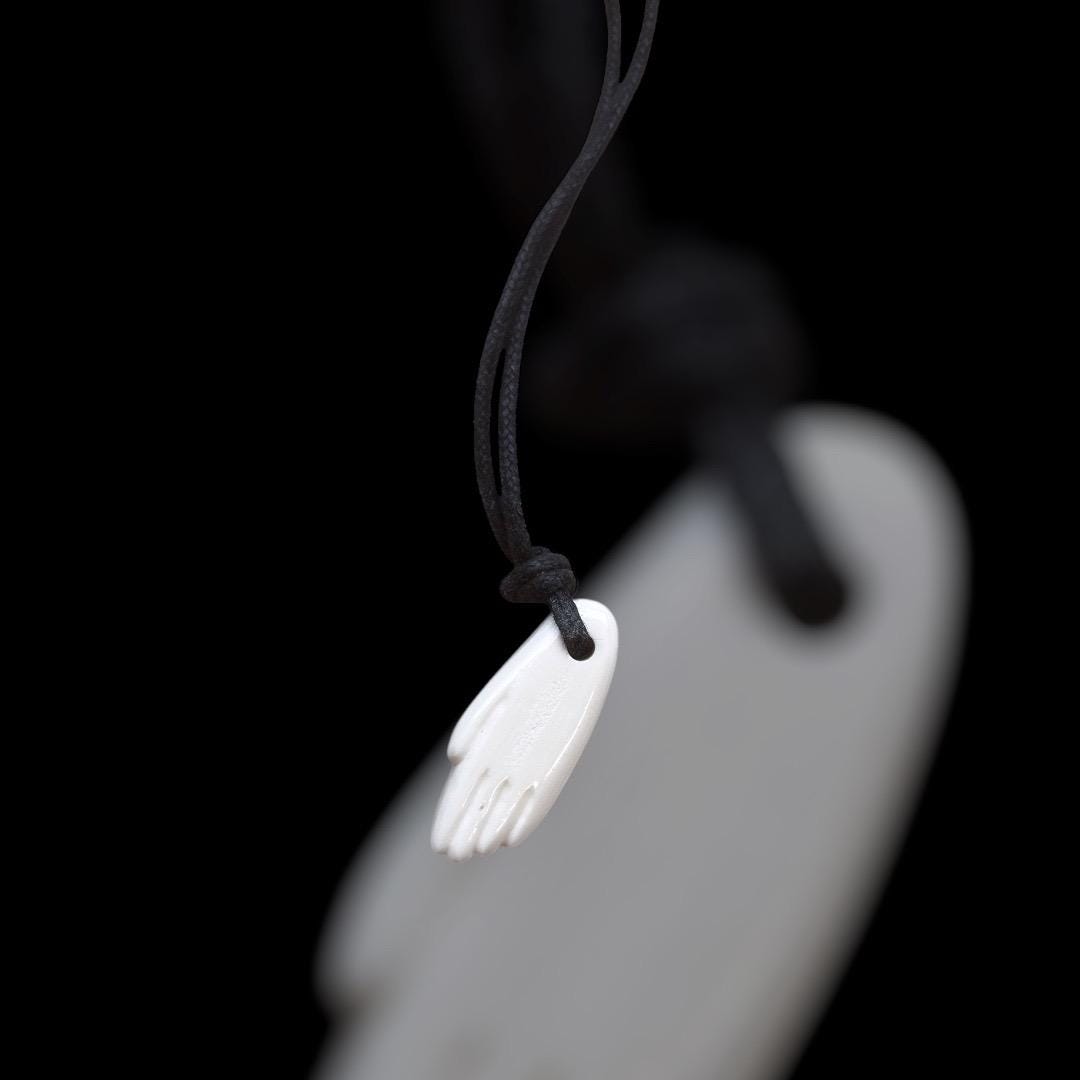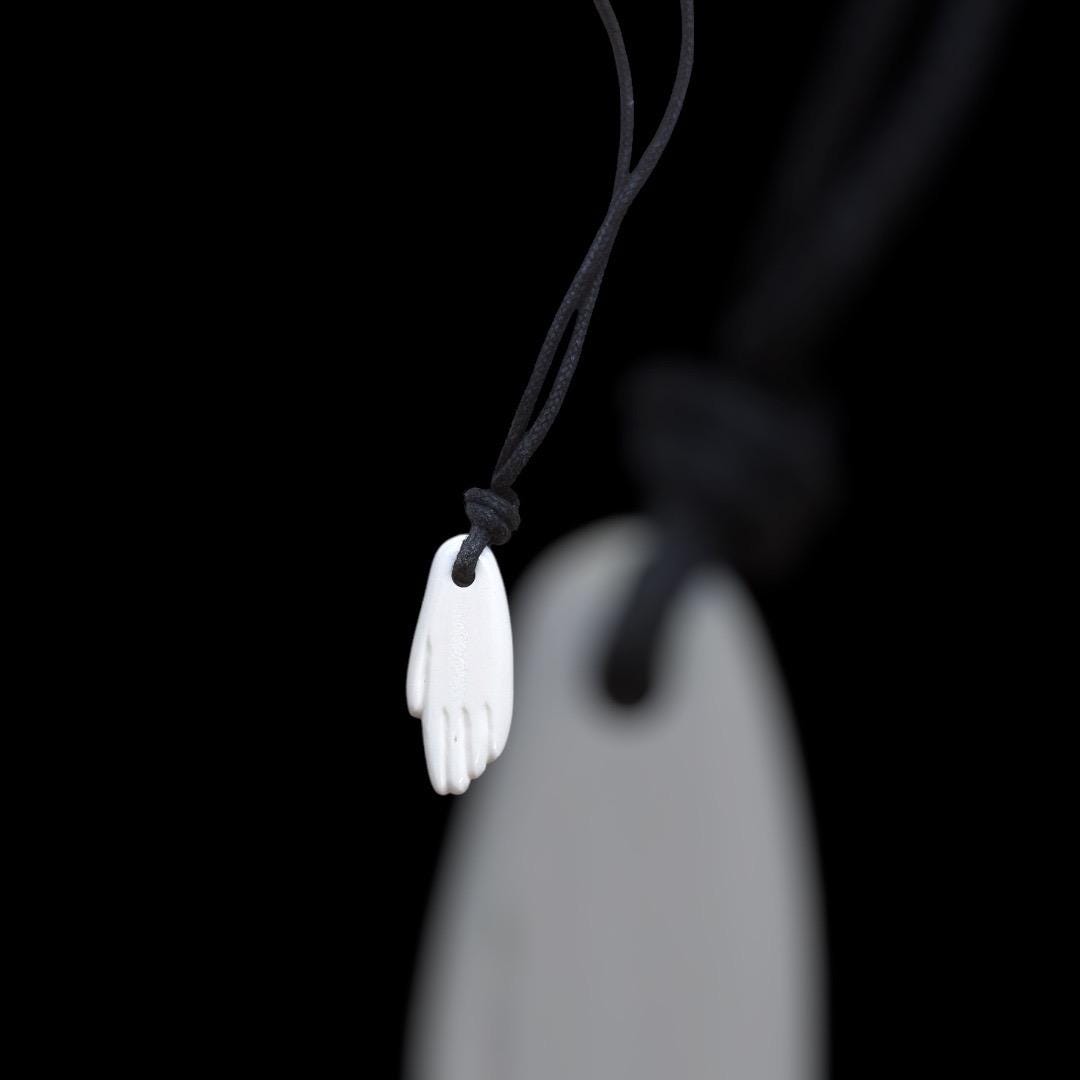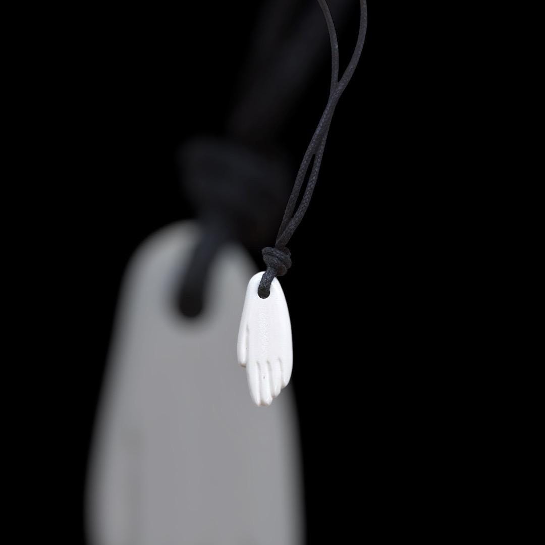 Römischer Kettenanhänger in Form einer Hand, 1. Jahrhundert, polierter Knochen, nach einem Fund aus Neapel, ca. 3cm