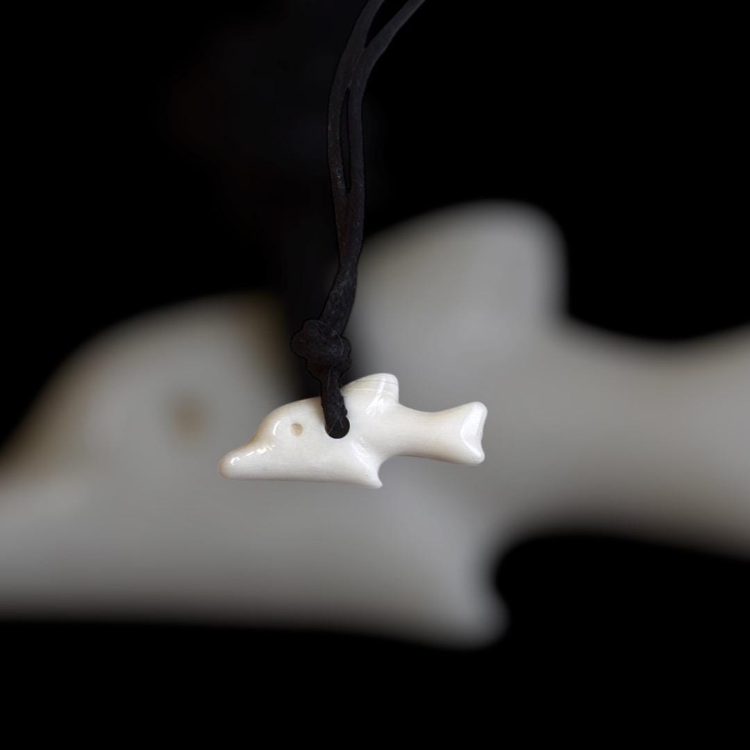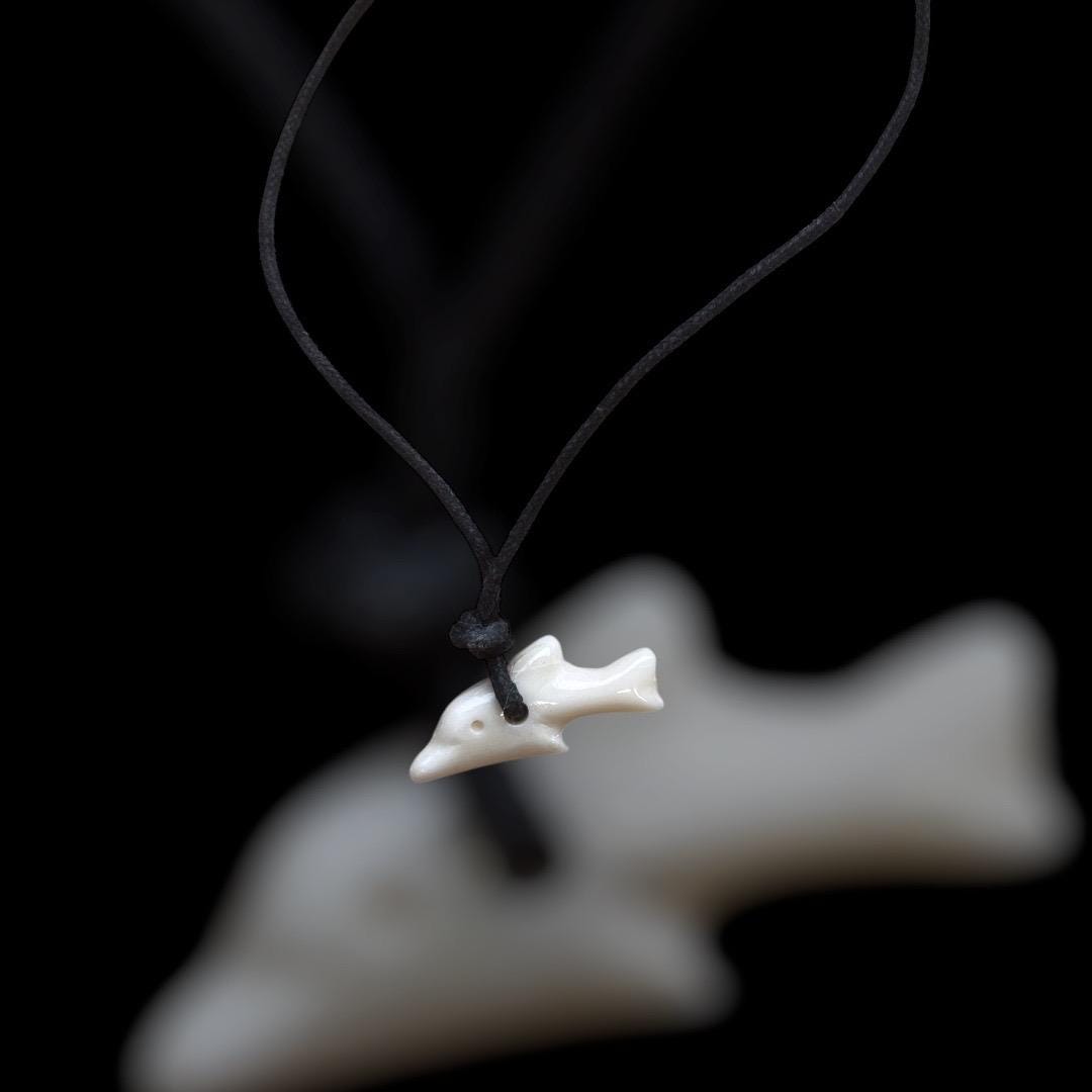 Dieser Kettenanhänger in Form eines Fisches wurde nach einem römischen Fund aus Neapel gefertigt. Wie das Original besteht er aus Rinderknochen und kommt mit einem 2mm schwarzen Baumwollband. Fische waren beliebte Motive für römischen Schmuck, da sie mit Venus, der Göttin der Schönheit, vergesellschaftet wurden, die dem Mythos nach aus Meeresschaum geboren wurde.
