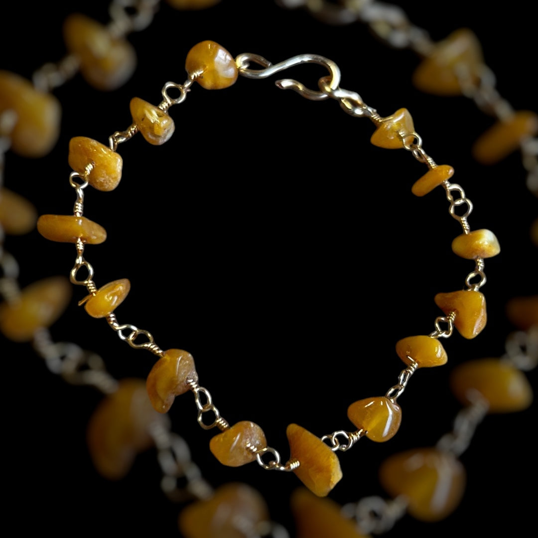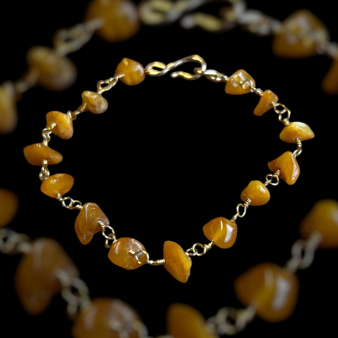 römisches Armband, 1. bis 4. Jahrhundert, Bernstein, Messingdraht , 20cm