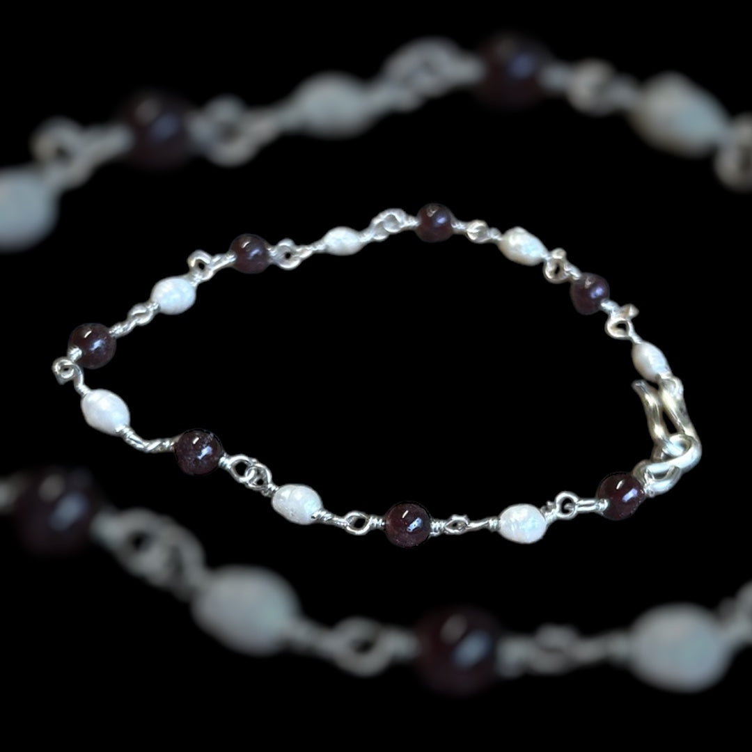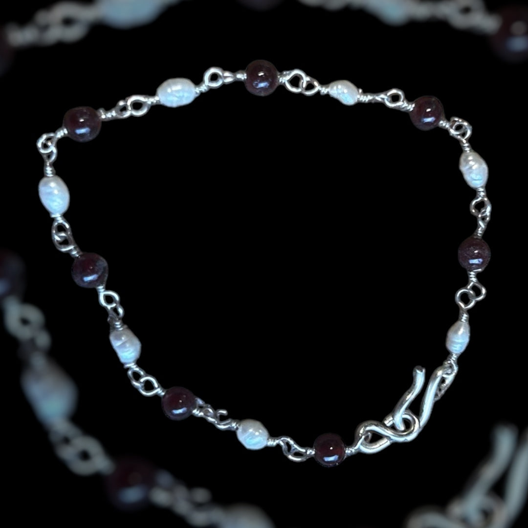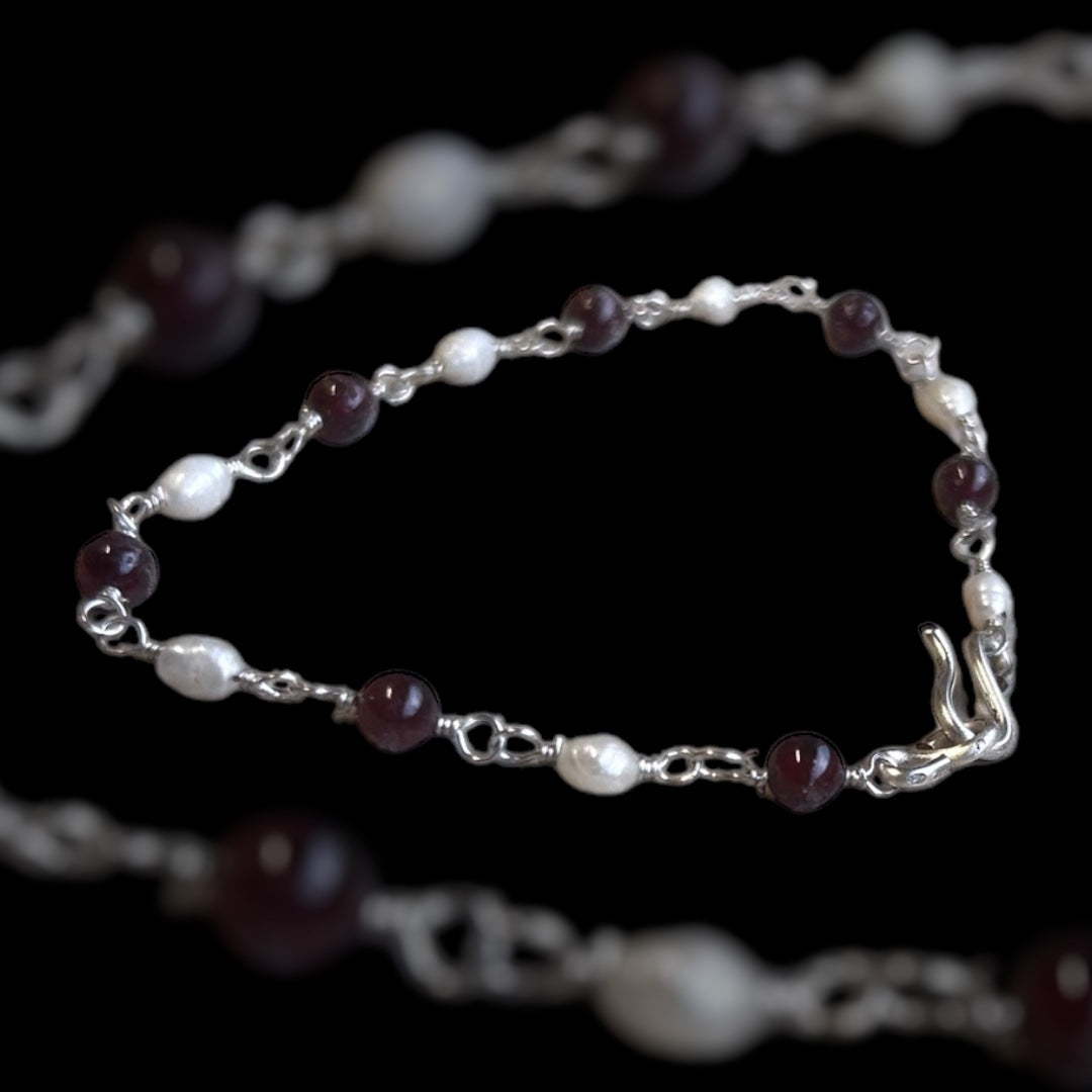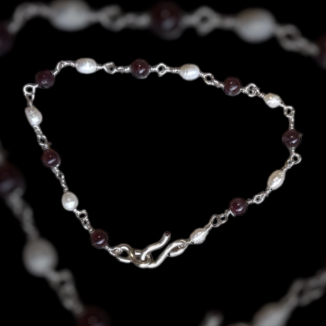 römisches Armband, 1. bis 4. Jahrhundert, Süßwasserperlen und Granat, versilberter Draht Draht , 19cm