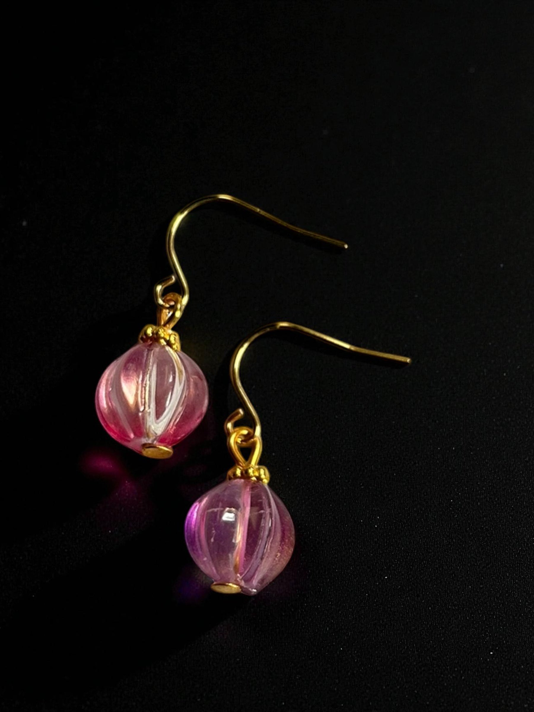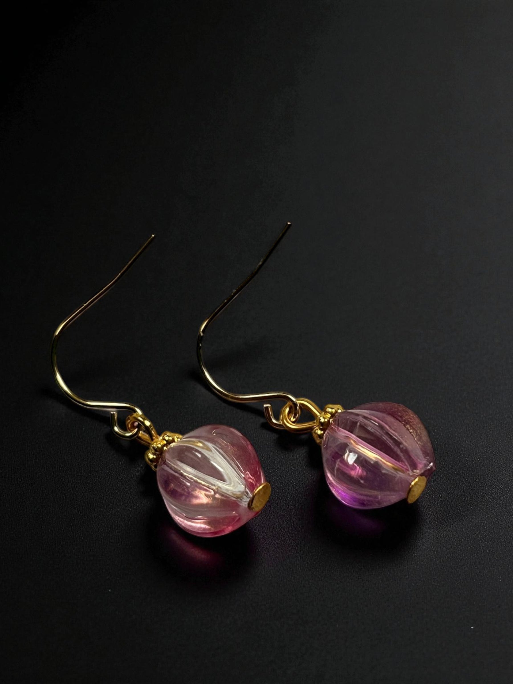 Rosa Melonenperlen-Ohrhänger, eisenzeitlich - römisch, vergoldetes Messing, Glas , vergoldeter antiallergener Edelstahl (Haken),