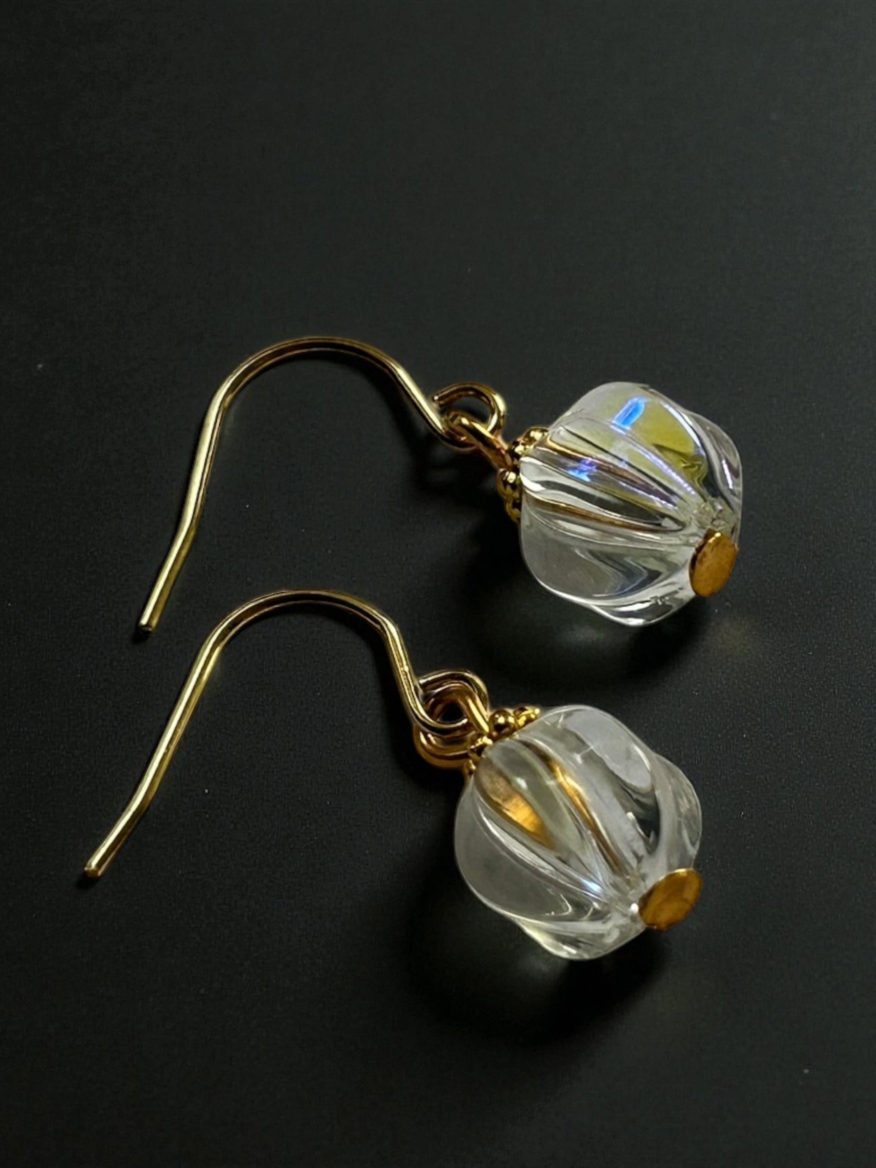Klare Melonenperlen-Ohrhänger, eisenzeitlich - römisch, vergoldetes Messing, Glas , vergoldeter antiallergener Edelstahl (Haken), (Kopie)