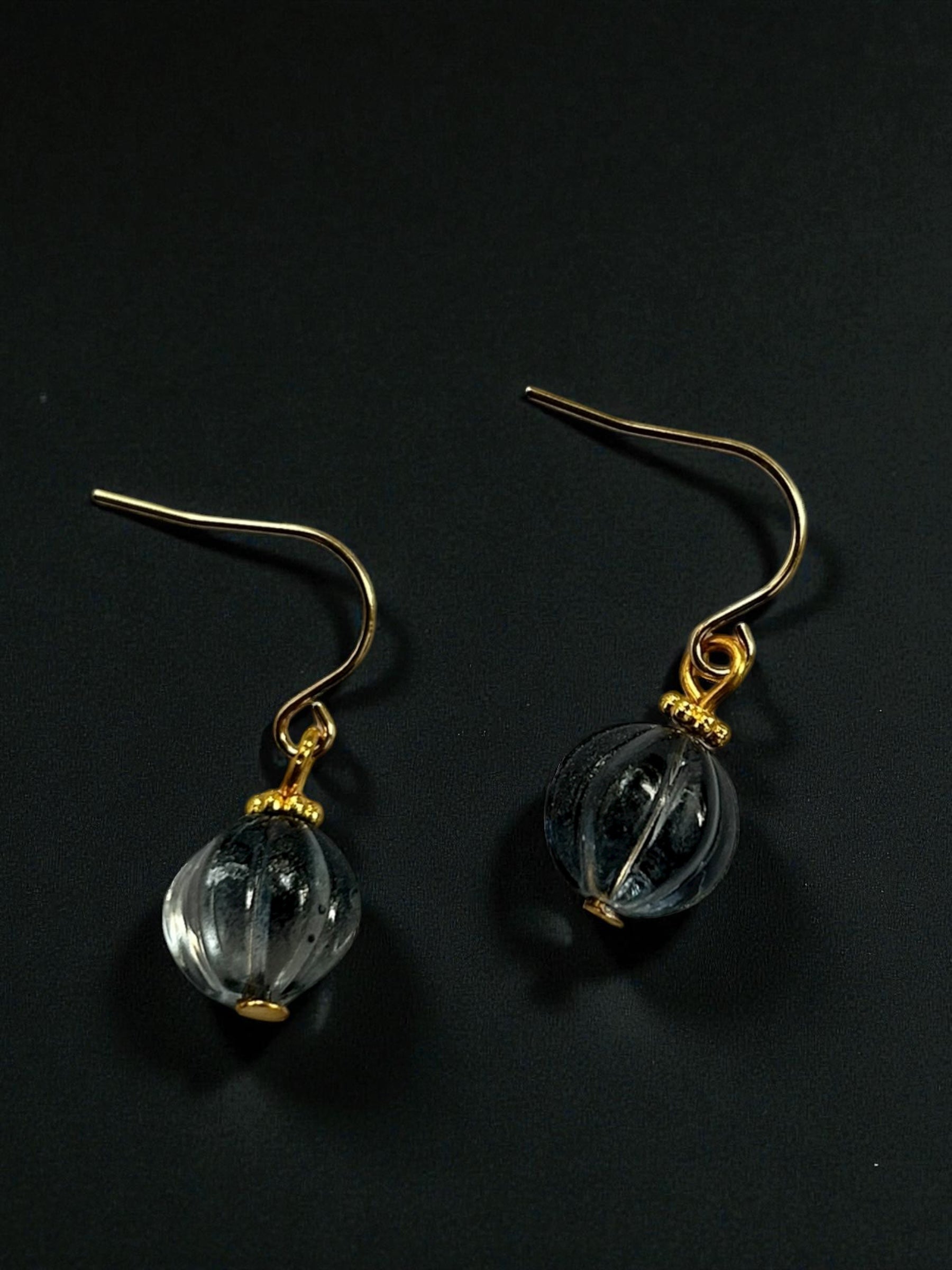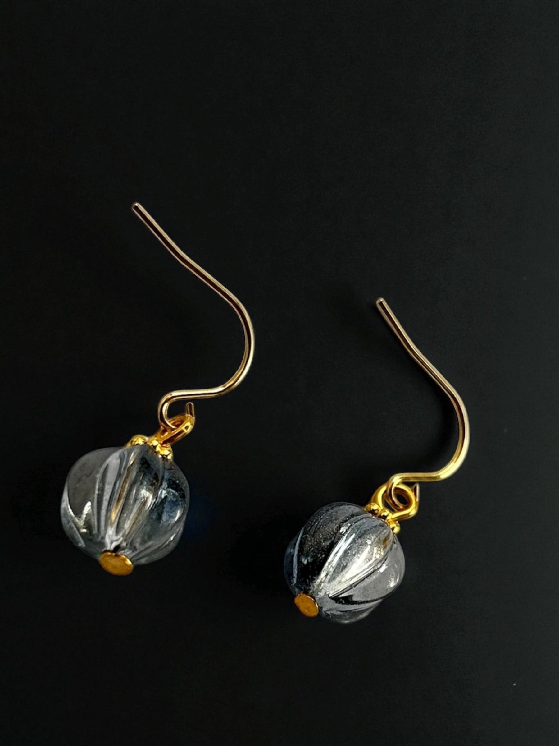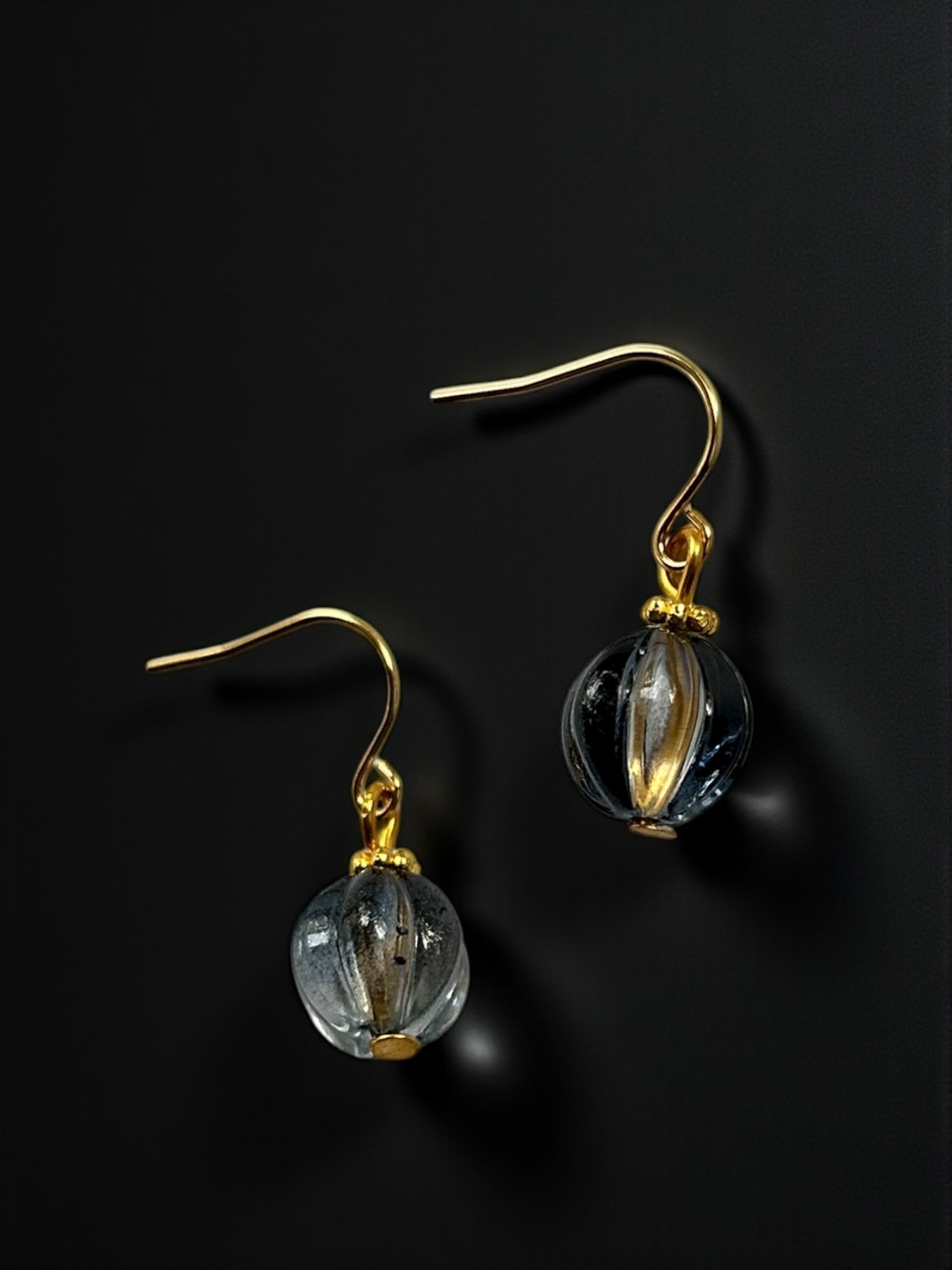 Graue Melonenperlen-Ohrhänger, eisenzeitlich - römisch, vergoldetes Messing, Glas , vergoldeter antiallergener Edelstahl (Haken), (Kopie) (Kopie) (Kopie) (Kopie) (Kopie)